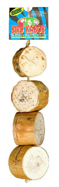 Bird Kabobs are the ultimate shreddable bird toys. Made from a soft pithy wood. They are irresistible to all hookbill birds from parakeets to macaws. They satisfy the instinctual need of these birds to chew. They have been described as bird catnip. Recommended by veterinarians for for birds with feather picking problems. Legendary among bird lovers worldwide. You'll be amazed at the site of your bird enjoying the bird Kabob. These are truly the most sensational bird toys ever made.