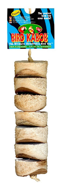 Bird Kabobs are the ultimate shreddable bird toys. Made from a soft pithy wood. They are irresistible to all hookbill birds from parakeets to macaws. They satisfy the instinctual need of these birds to chew. They have been described as bird catnip. Recommended by veterinarians for for birds with feather picking problems. Legendary among bird lovers worldwide. You'll be amazed at the site of your bird enjoying the bird Kabob. These are truly the most sensational bird toys ever made.