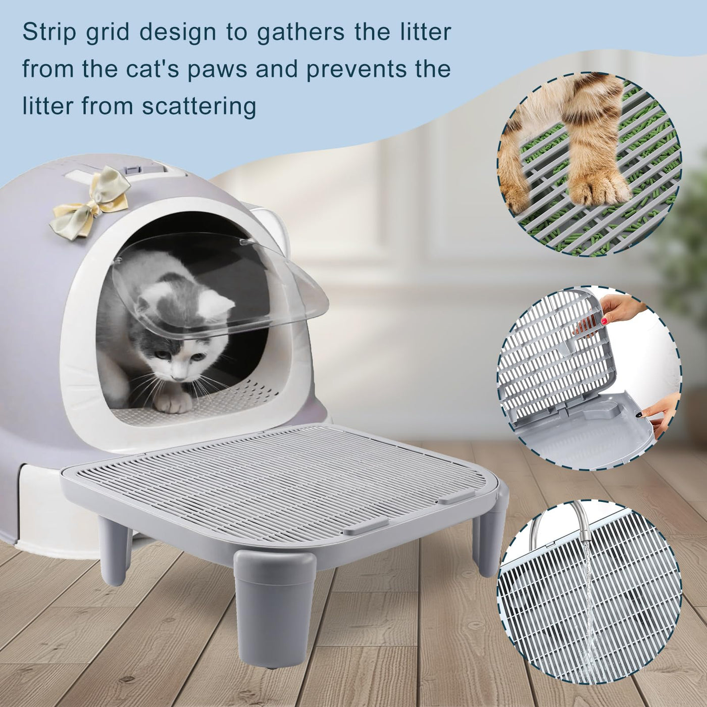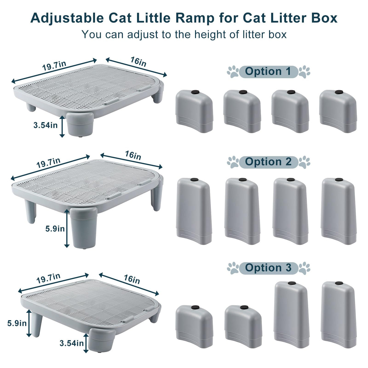 Wesketch Adjustable Cat Litter Ramp For Elevated Cat Litter Box, Double Layered Litter Trapper With Filter Function, Easy Clean,