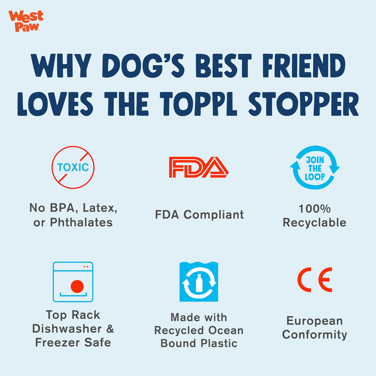West Paw Toppl Stopper 2-Pack In Aqua Blue - Designed For Dog Enrichment, Accessory That Fits All Toppl Dog Toy Sizes - Makes Me