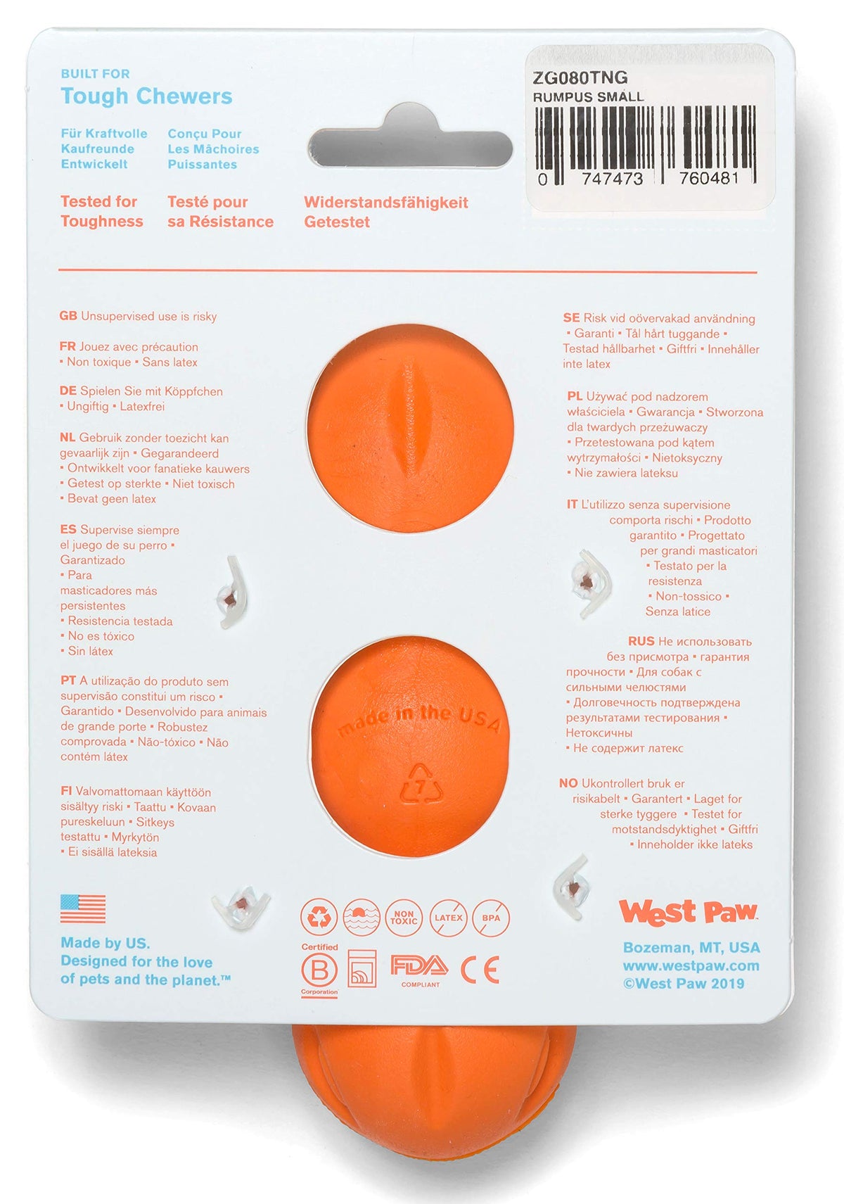 West Paw Zogoflex Rumpus Dog Chew Toy – Floatable Toy For Dogs, Aggressive Chewers – Puppy Chewing Toys For Catch, Fetch – Recyclable, Dishwasher-Safe, Small 5.25', Tangerine