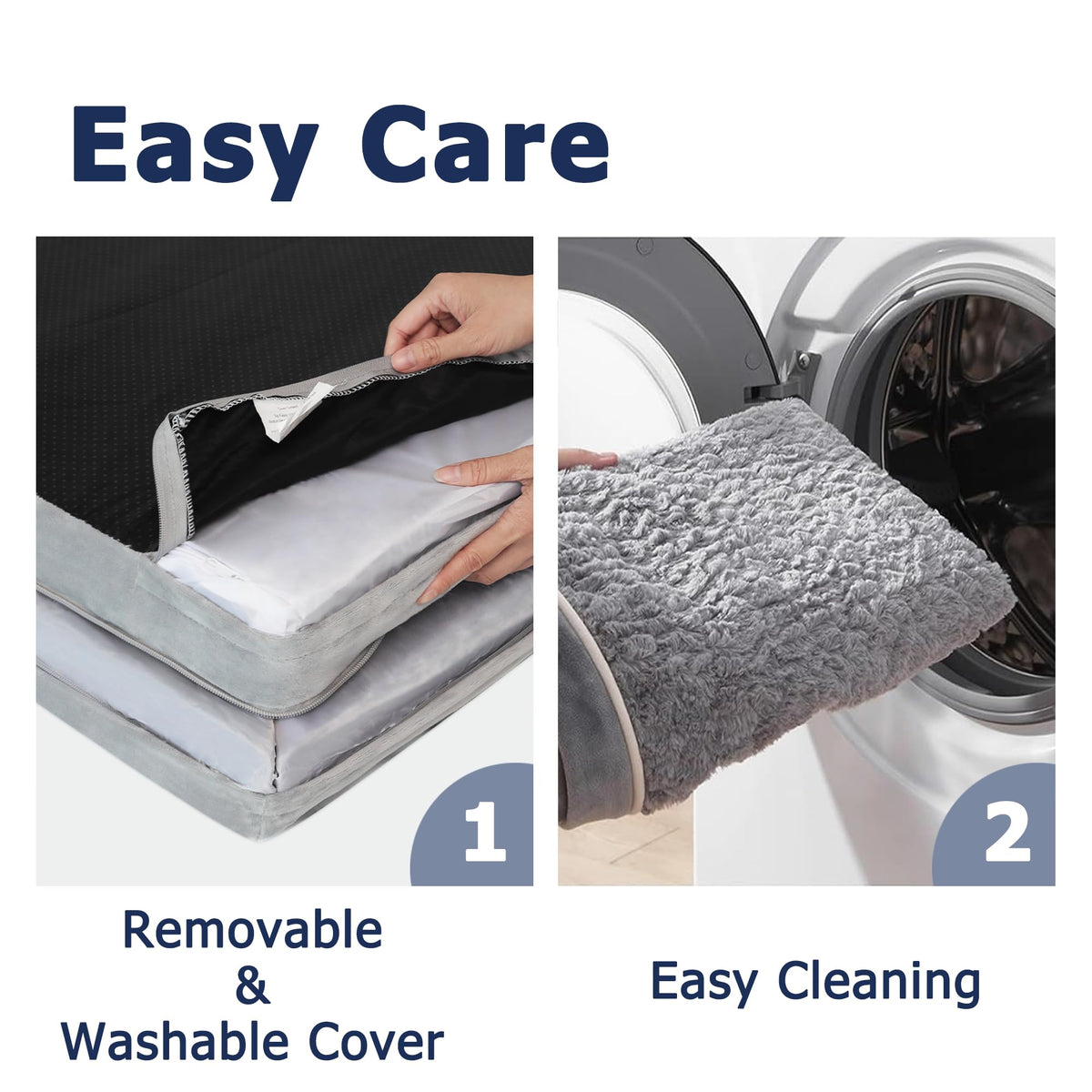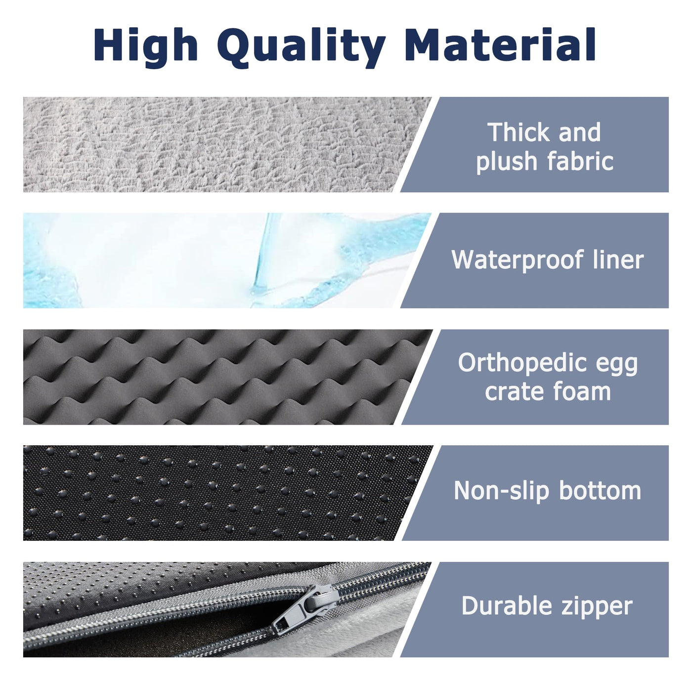 ?MADE FOR COMFORT? The 4'' high-density egg crate foam orthopedic dog bed supports and relieves your fur baby's muscles and joints. Comforts as a calming dog bed for senior dogs and dogs with arthritis who suffer from anxiety. The non-slip bottom can fix the position of dog beds it brings more security to your dog.