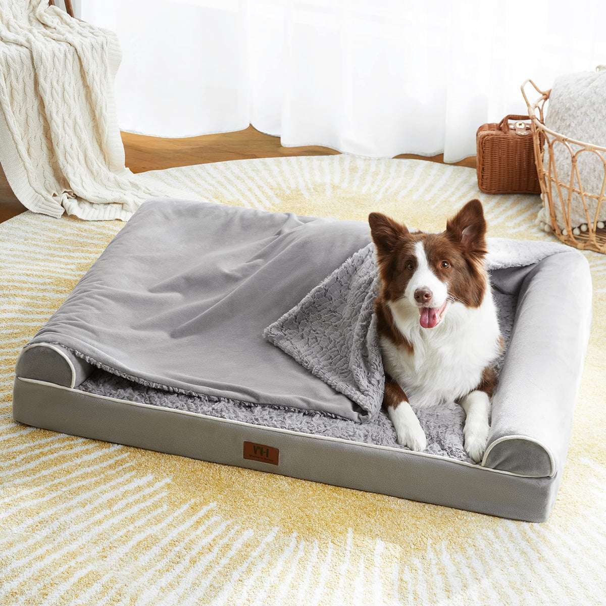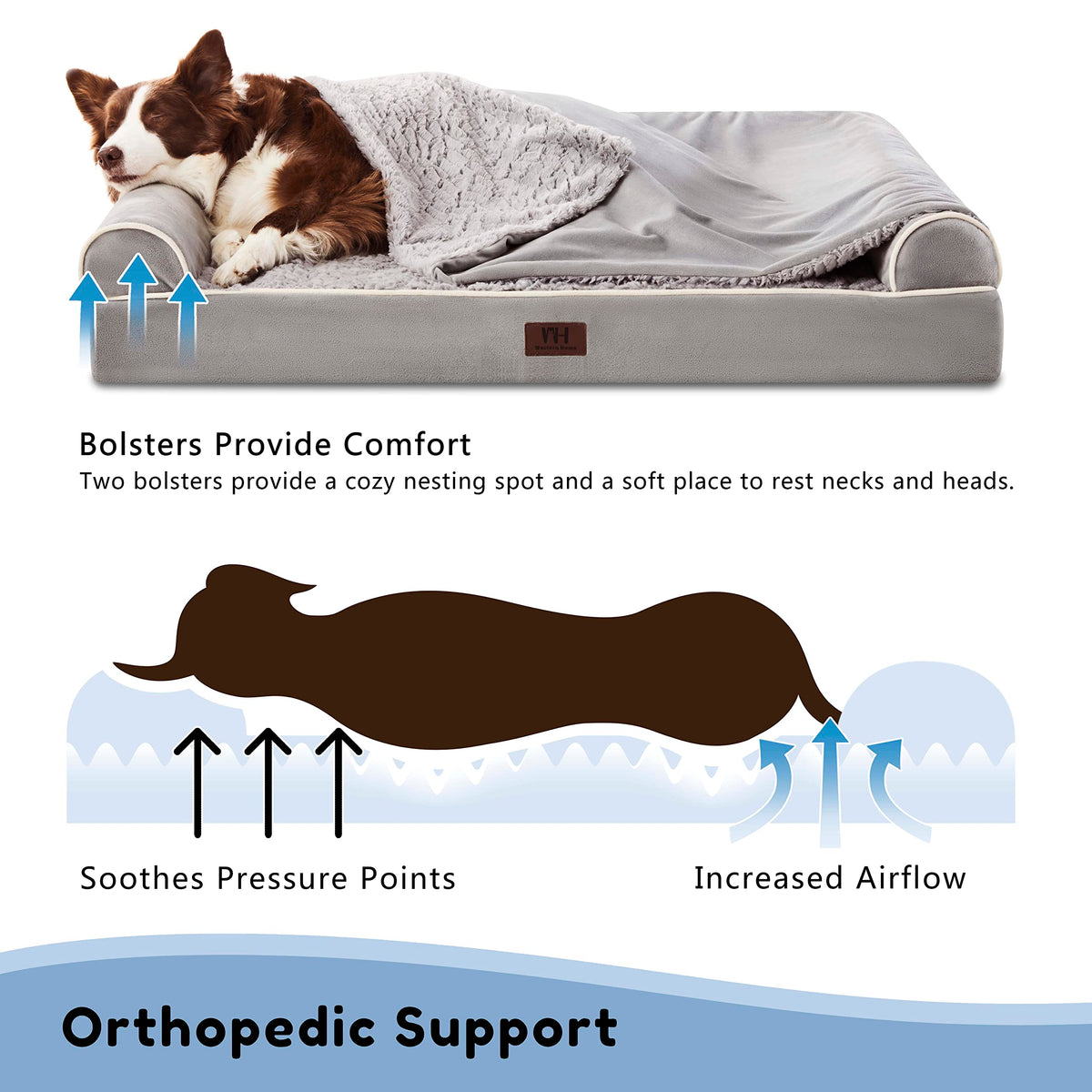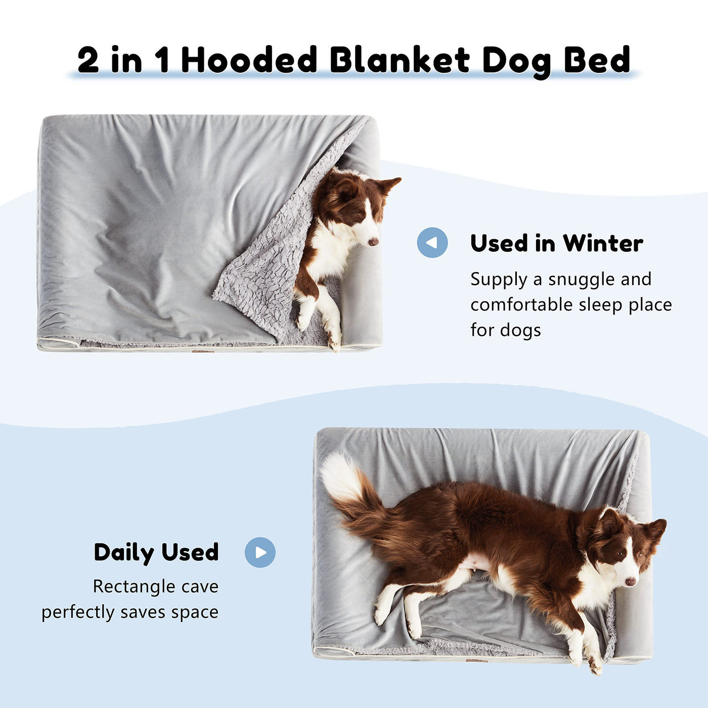 Western Home Orthopedic Dog Beds for Large Dogs Foam Pet Sofa with Hooded Blanket Removable Washable cover and Nonskid Bottom Dog couch Bed for comfortable Sleep