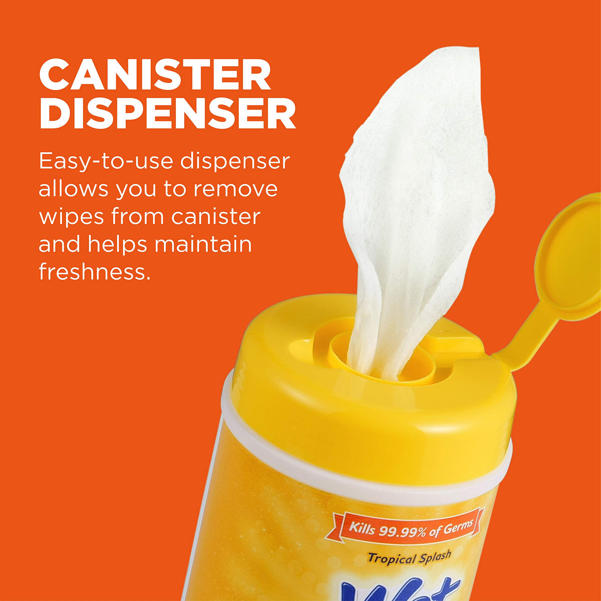 Wet Ones for Pets Multipurpose Wipes for Dogs are designed with your pet in mind for a quick, gentle, & healthy clean anytime, anywhere! Wet Ones for Pets Multipurpose Wipes for Dogs are a perfect solution for quick and easy clean up in between baths. The days of trying to clean up after your dog are over. Wet Ones wipes are the fast, effective way to wipe down your dog's paws after a romp in the grass or off-leash run through the park. These safe, easy to use dog wipes are formulated with Aloe Vera to help moisturize your dog's skin and maintain a glossy coat. This variety of dog wipes comes in a fresh Tropical Splash scent, leaving behind just a hint of a great smell that everyone can enjoy. Made specifically for pets and safe for use after outdoor playtime or indoors, these Wet Ones wipes keep and your home clean and smelling fresh. Directions:1. Remove wipe from canister and reseal to maintain freshness.2. Wipe down dog from back of neck to tail, carefully avoiding the eyes.3. Dispose of wipe in trash, do not flush.4. Play on!Active Ingredient: Benzalkonium Chloride (0.3%).Inactive Ingredients: Water, Aloe Barbadensis Leaf Juice, PEG-75 Lanolin, Quaternium-52, PEG-8 Dimethicone, Fragrance,Disodium Cocoamphodiacetate, Disodium EDTA, Chamomilla Recutita (Matricaria) Flower Extract?Potassium Sorbate, Phenoxyethanol, Cetylpyridinium Chloride, Sodium Benzoate, Citric Acid.WARNINGS: For external use only. Safe for dogs 8 weeks of age and older. Avoid contact with eyes. Keep out of reach of children.