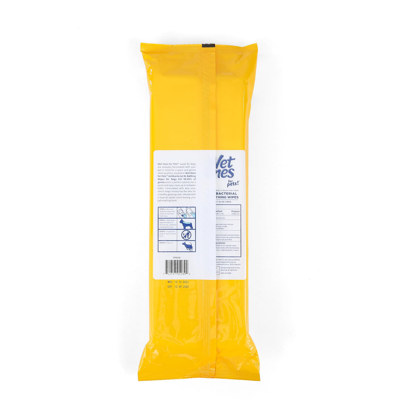 Wet Ones for Pets™ XL Disposable Pet Bathing Wipes make it easier than ever to keep your large and thick-fur dog clean on-the-go! No hoses, bathtubs, or water needed! They’re perfect for travel, spot grooming, or keeping pets clean and fresh between grooming appointments. These extra large size disposable wipes offer more coverage for larger sized dogs or those with thick or long fur. Wet Ones for Pets™ uses special cleaning formulations just for dogs’ unique skin, removing 99.99% of dirt. The fun and fresh scent of Tropical Splash is pleasant, but not overpowering, and it helps give a quick refresh without the need for a full groom. Additionally, these wipes include aloe vera for extra skin nourishment and hydration. The resealable package contains 10 extra large sized dog wipes, each measuring 24” x 16”. Wet Ones for Pets™ knows what pet parents love and need most for nose-to-toe-to-tail clean-up! Keep a package in your car for travel or everyday touch-ups after trips to the dog park. Perfect for new puppy supplies or to have on hand for adult dogs between baths or grooming appointments. And when pet parents need quick and easy solutions for on-the-go cleaning and refreshing, they reach for Wet Ones for Pets™! Be sure to shop all of our convenient pet clean-up solutions from Wet Ones for Pets™ for everything pet parents need most for nose-to-tail clean-up!