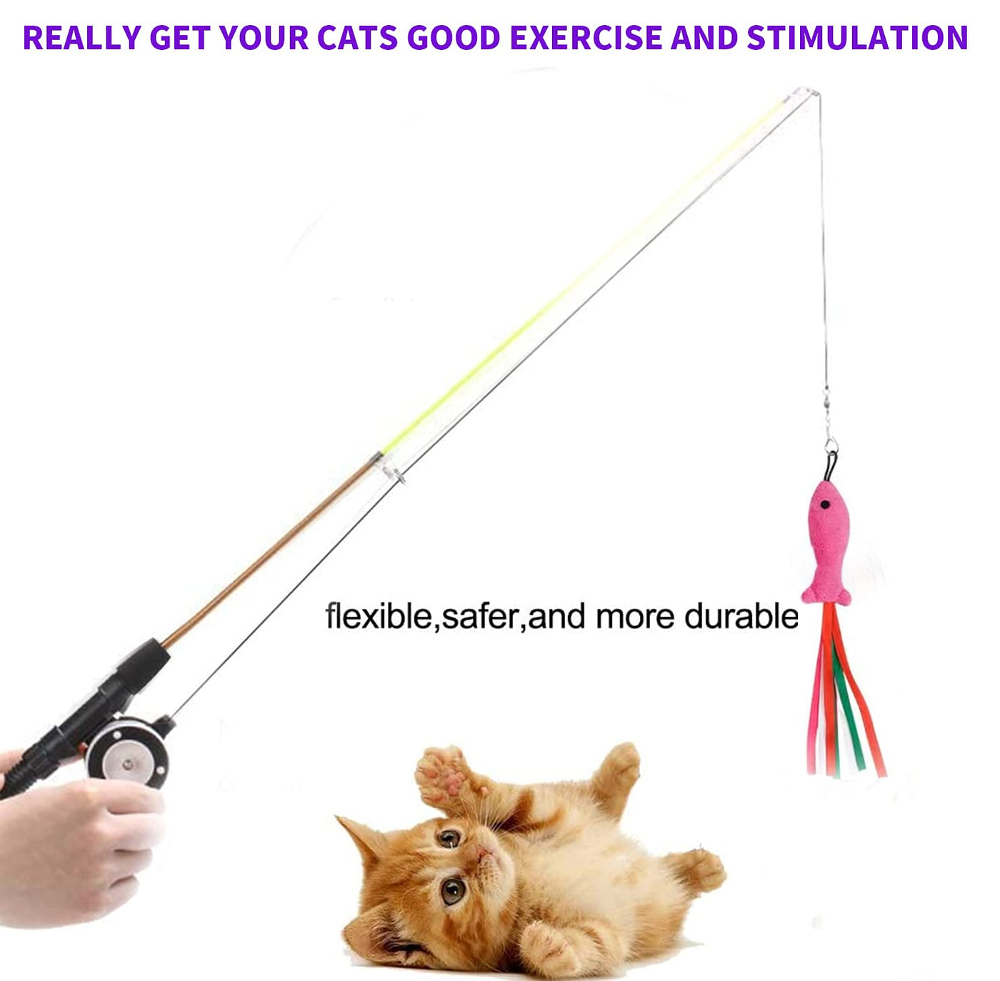 Comfortable Sponge Grip: The fishing rod grip is wrapped with soft sponge layer which is comfortable to the touch and non-slip and easy to hold when interact with your kitty.
