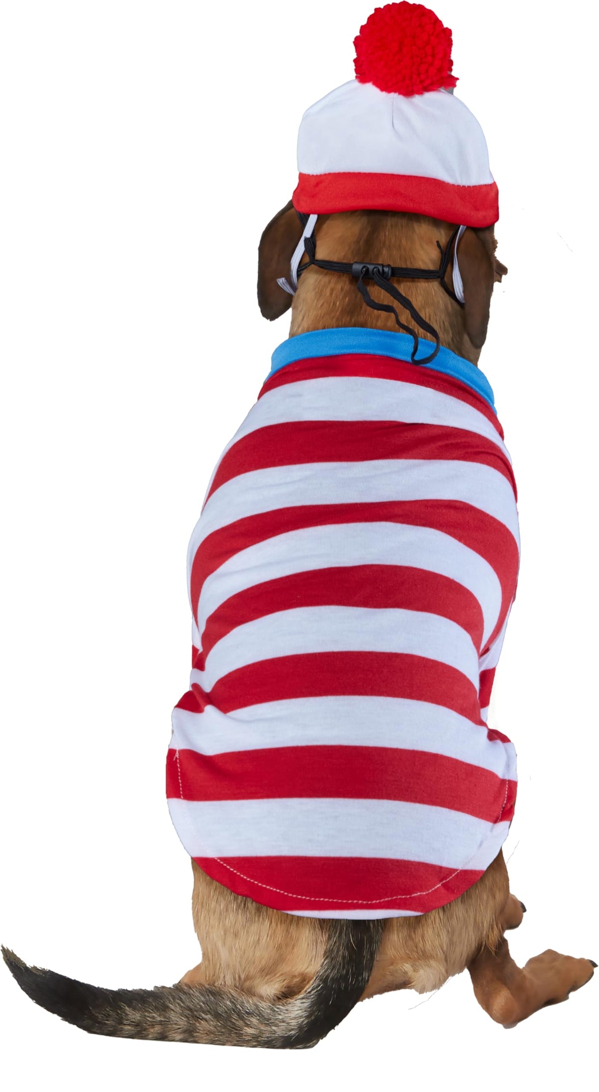 Get ready for a game of hide-and-seek with the Wheres Waldo Pet Costume by Rubies! This adorable outfit features a classic red and white striped shirt and a matching headpiece complete with Waldos signature round glasses and red-and-white beanie. Perfect for your furry friend who loves to join in the fun, this costume turns any pet into the worlds most famous wanderer. Easy to wear and designed for comfort, its ideal for Halloween, themed parties, or just making every day a playful adventure. Let your pet steal the spotlight as they help everyone find Waldo in the cutest way possible-because even pets love a good search!Since 1951, Rubies has been a trusted name in fun, offering safety-tested costumes, wigs, masks, and accessories for kids, adults, pets, and d cor. Now part of a global family of brands, Rubies delivers both licensed and original styles designed with quality, comfort, and creativity in mind. From Halloween to everyday play, our wide assortment helps bring imagination to life with on-trend looks and iconic characters. With over 70 years of experience, Rubies continues to inspire unforgettable moments for the whole family-year-round.