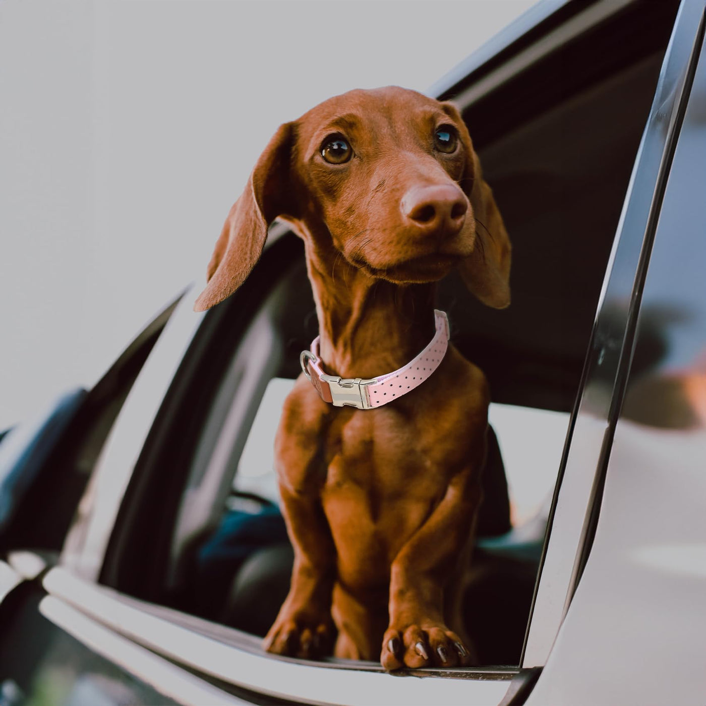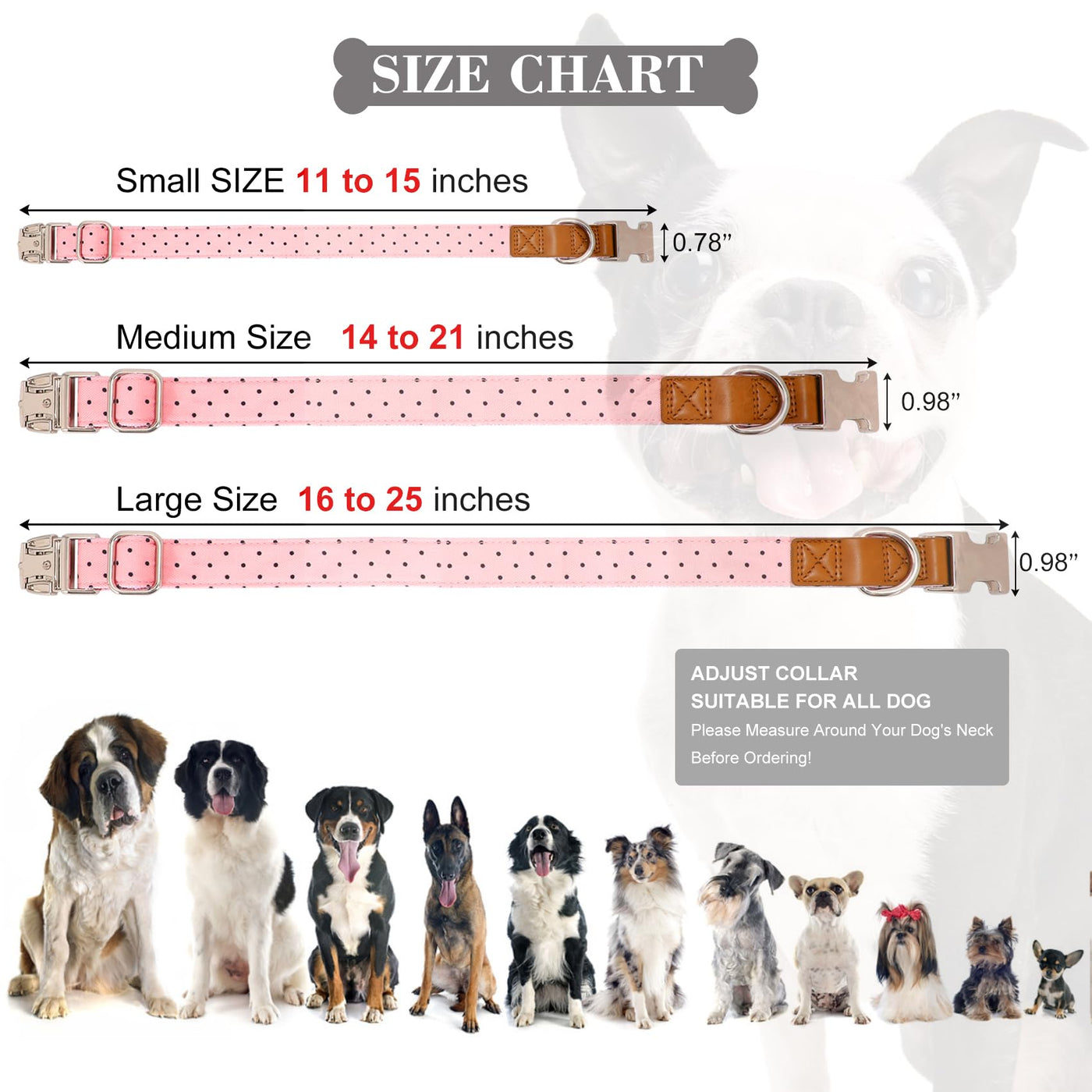 Whippy Floral Dog Collar With Quickly Release Metal Buckle Adjustable Cute Pink Dot Collars For Large Medium Small Breeds