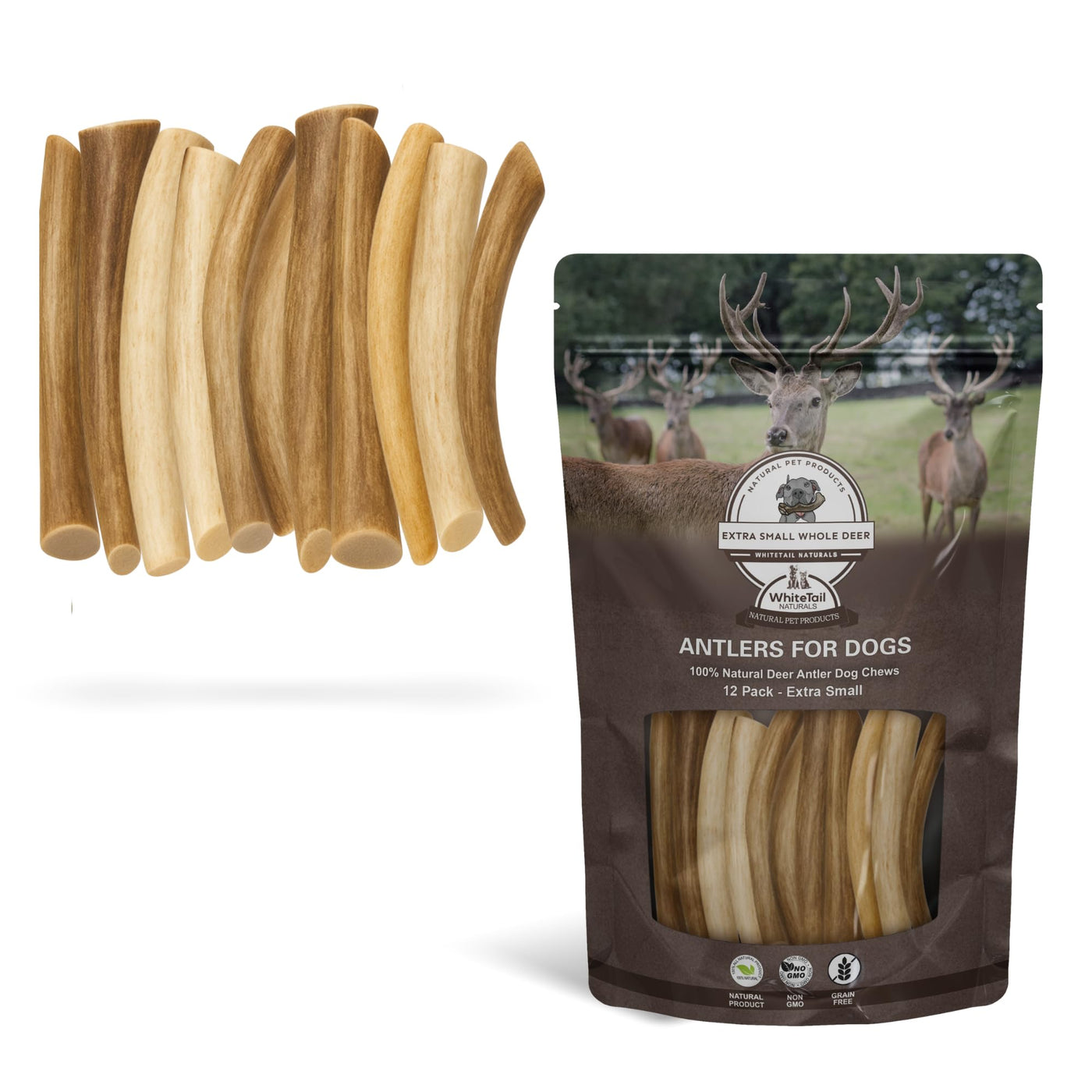 WhiteTail Naturals - Deer Antlers for Extra Small Dogs (12 Pack) Natural Dog Antler Chews for Puppies & Small Aggressive Chewers