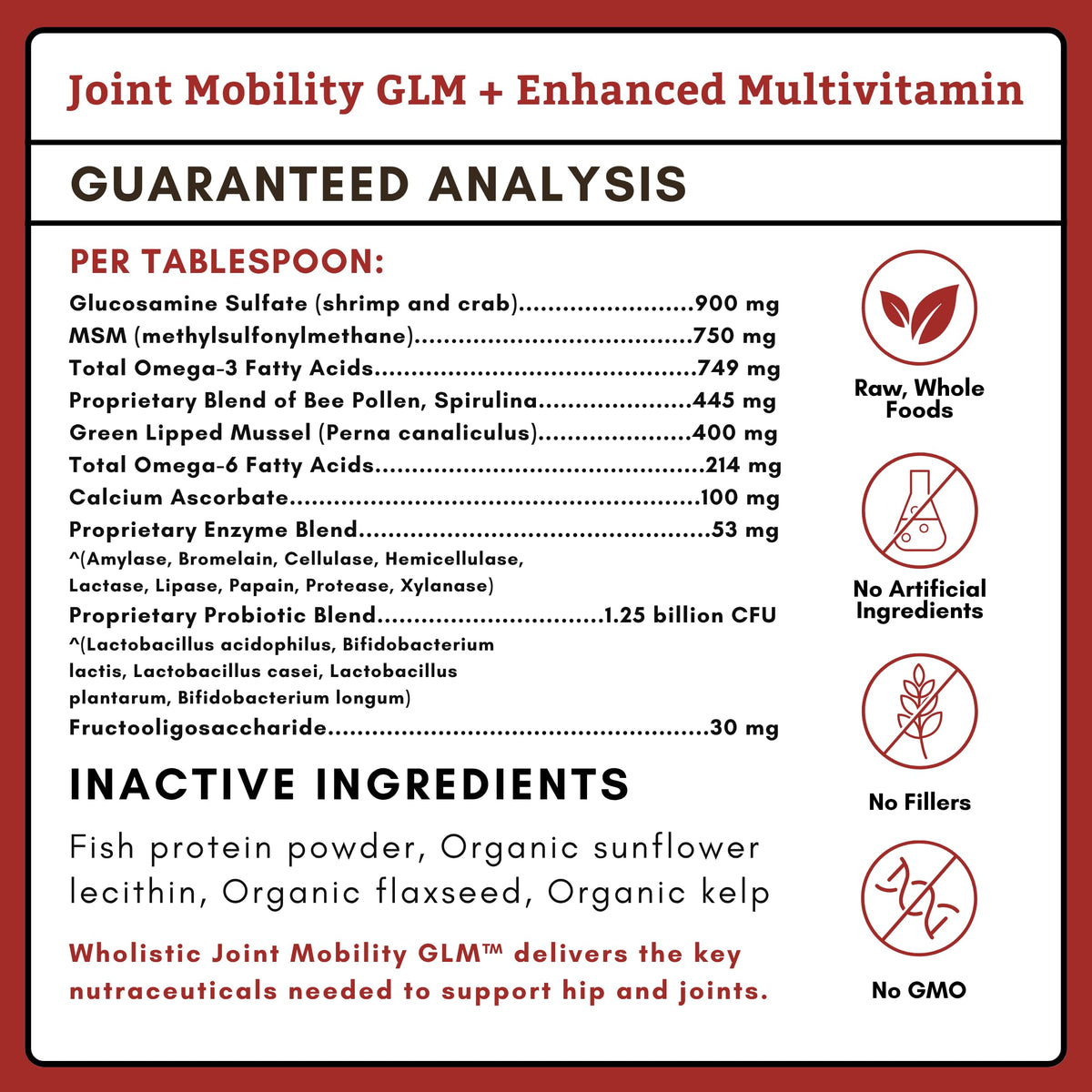 Wholistic Pet Organics Joint Mobility GLM - 2 Lb - Hip and Joint Supplement for Dogs - Glucosamine for Dogs - Chondroitin Supplement with Green Lipped Mussels - Senior to Puppy - Large & Small Breeds