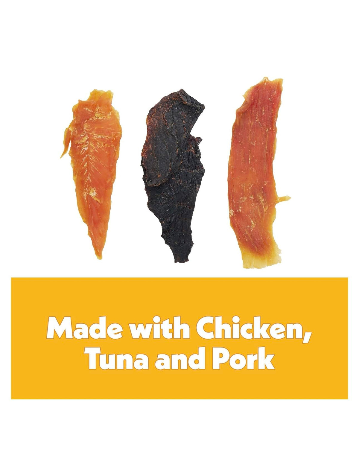 Wiggles & Wags Jerky Cuts Dog Treats, Assorted Chicken, Tuna and Pork, 16 Ounces with a DN Essentials Bone Shaped Waste Bag Disp