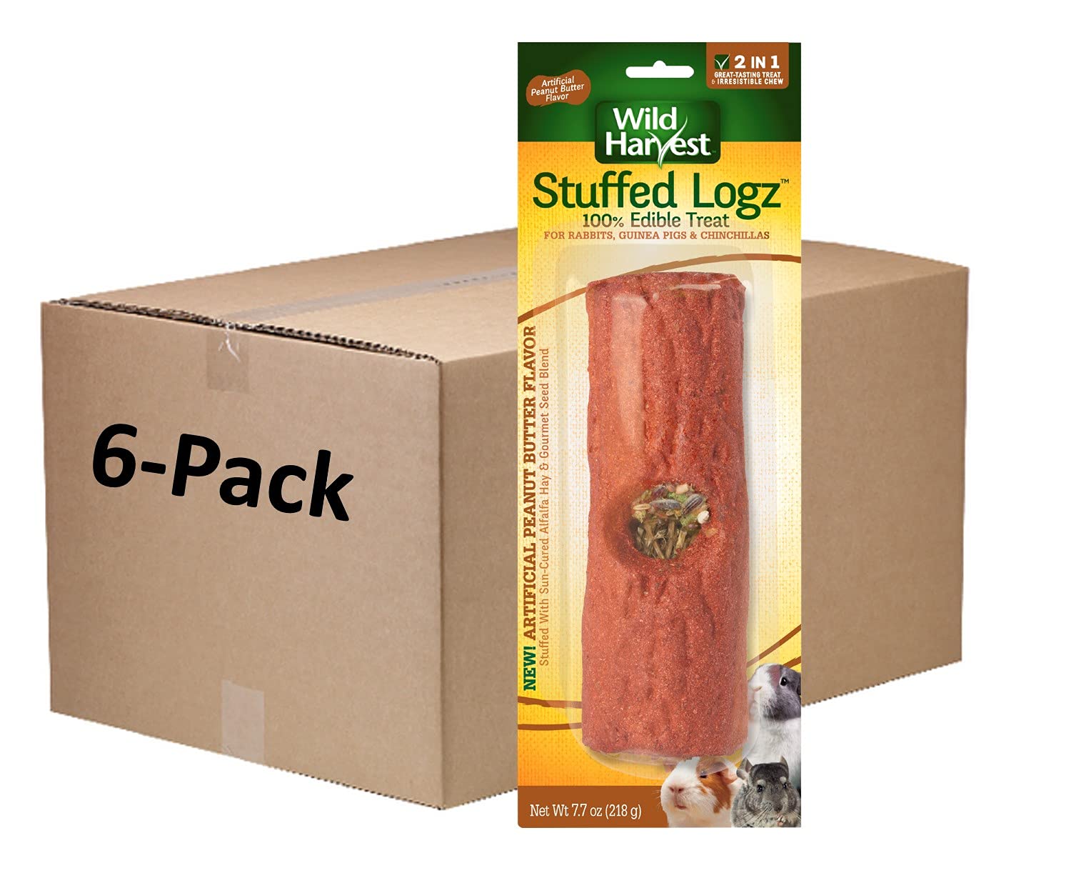 Wild Harvest Stuffed Logz 6 Count, Edible Treat for Rabbits, Guinea Pigs and Chinchillas, Artificial Peanut Butter Flavor (P-992