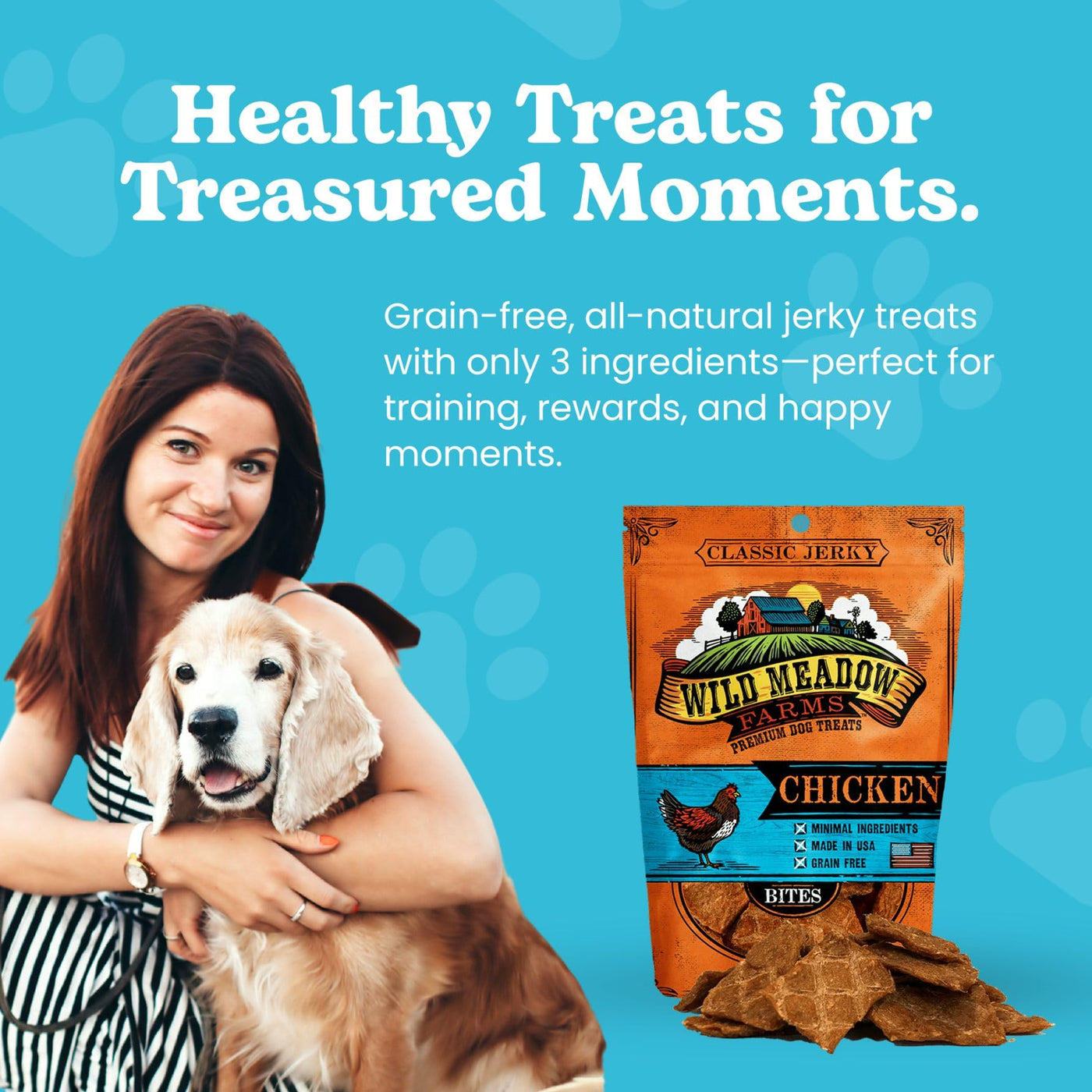Wild Meadow Farms - Classic Chicken Bites, Soft Jerky Treats for Dogs, Grain-Free & All-Natural, Ideal for Training, Portioning,