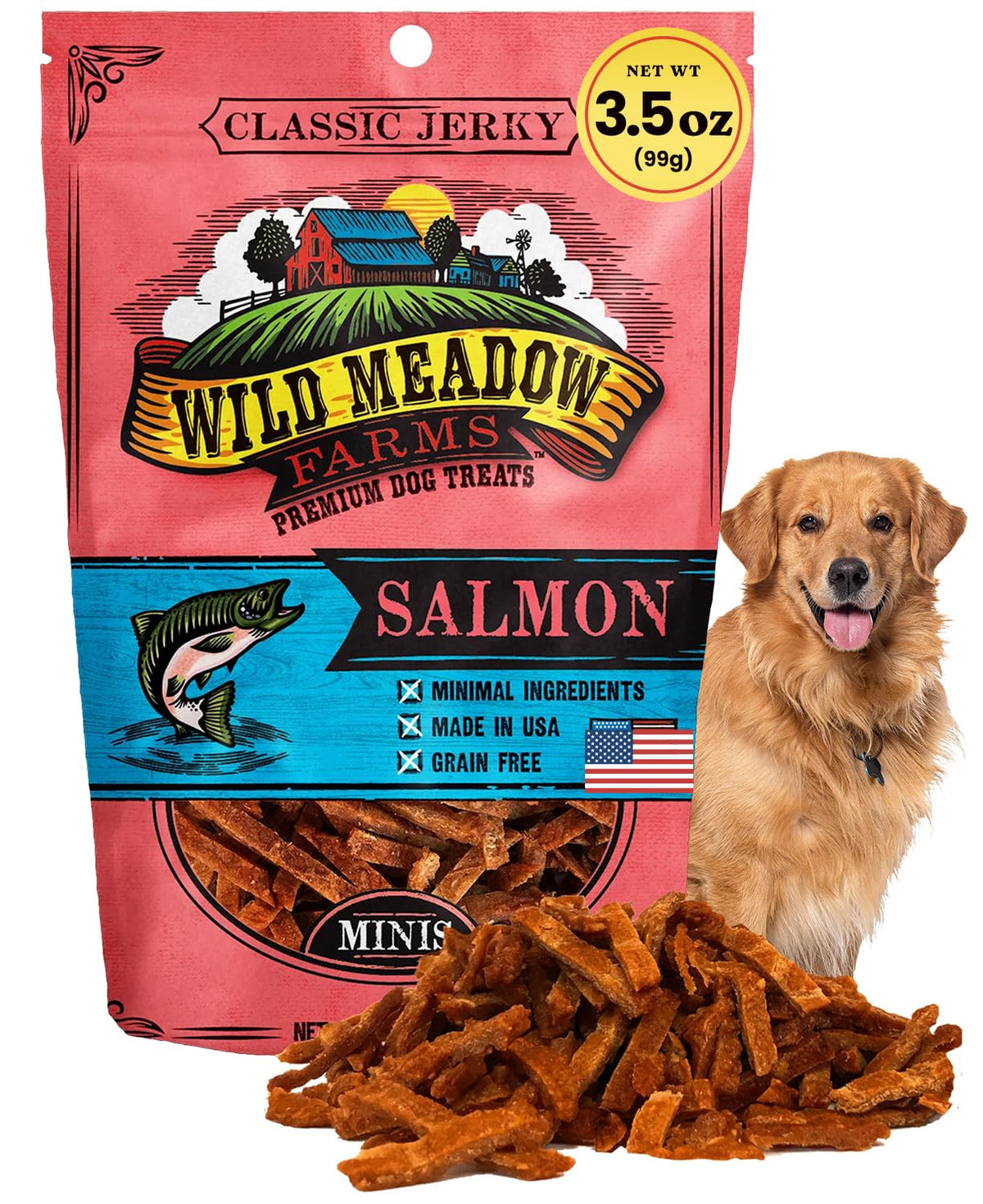 Wild Meadow Farms - Classic Salmon Minis, Soft Jerky Training Treats for Dogs, Grain-Free, All-Natural & Perfectly Sized for Tra