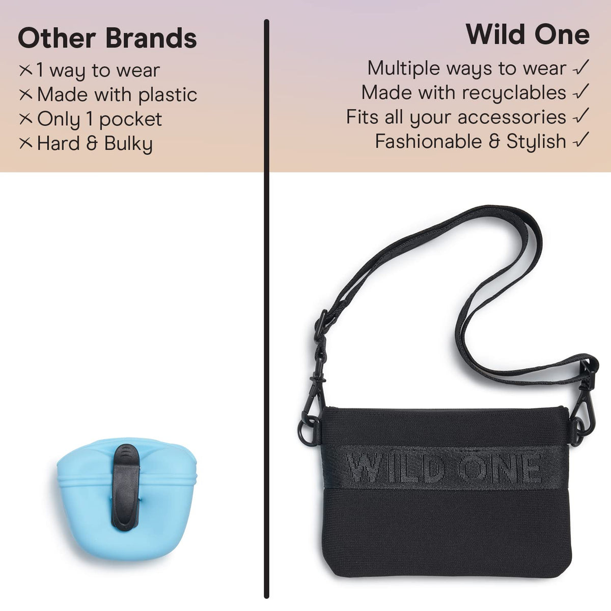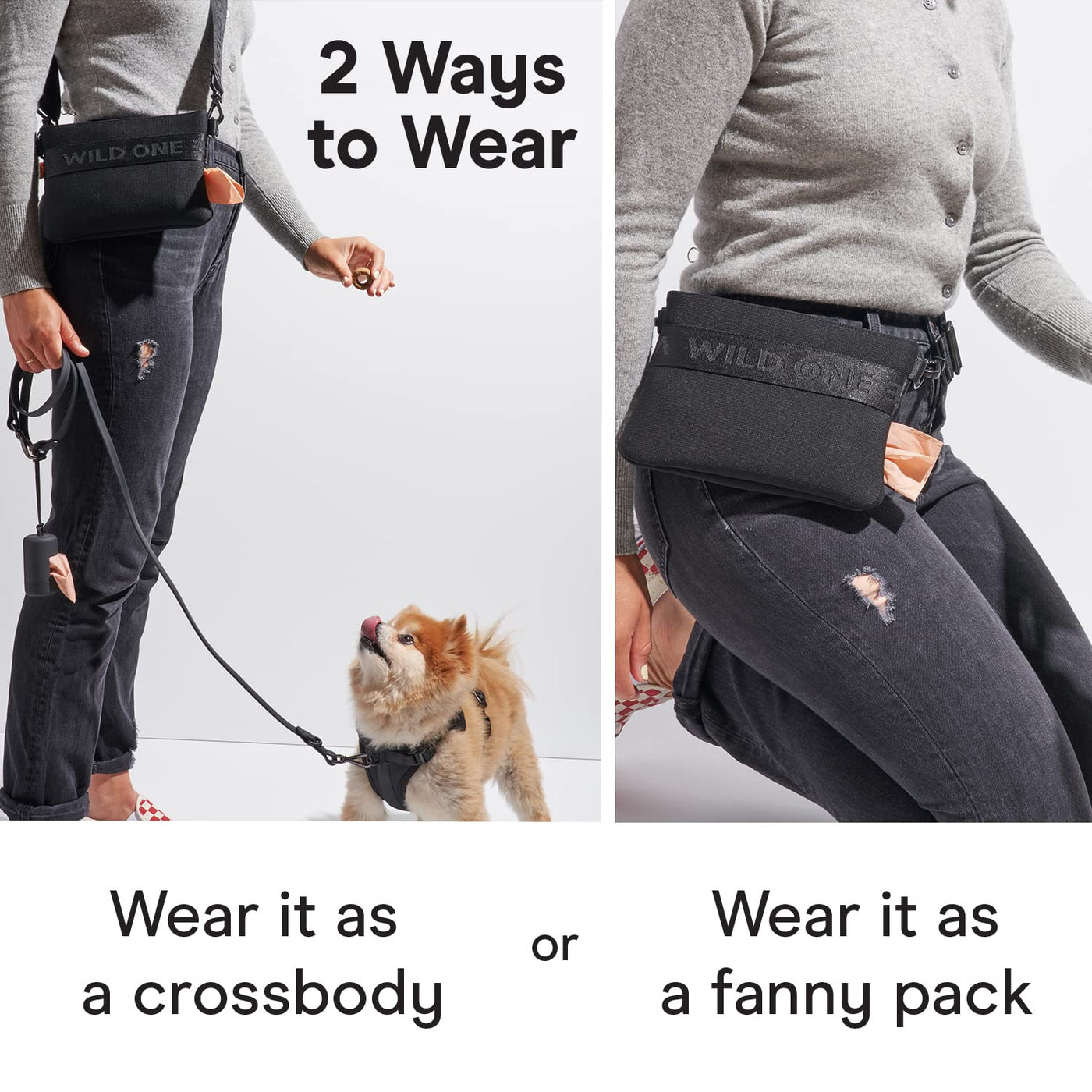 Wild One, Black Treat Pouch, Fanny Pack, Cross-Body Bag, wear Two Ways, Made from Recycled Knit, Poop Bag Dispenser, The Perfect