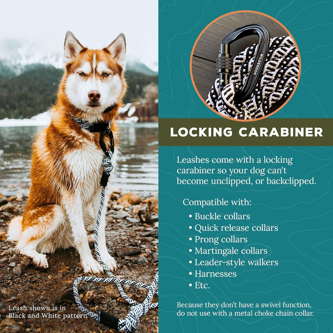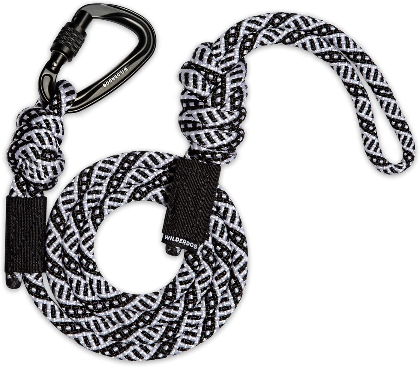 Wilderdog Carabiner Climbing Rope Dog Leash For Medium & Large Dogs - 5Ft - Black & White