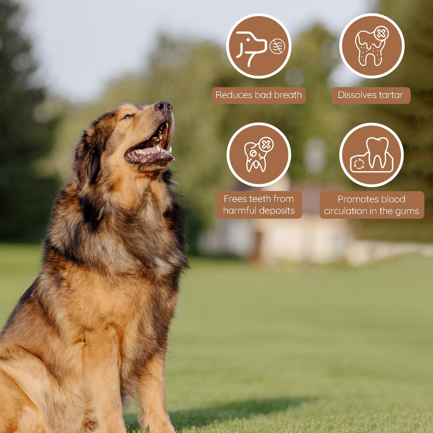 Q: How does the Wildfang Olive Wood Chew promote dental health?A: The rough texture of the olive wood helps to naturally clean your dog's teeth and gums as they chew, reducing plaque build-up and supporting overall dental health while satisfying their natural chewing instincts.