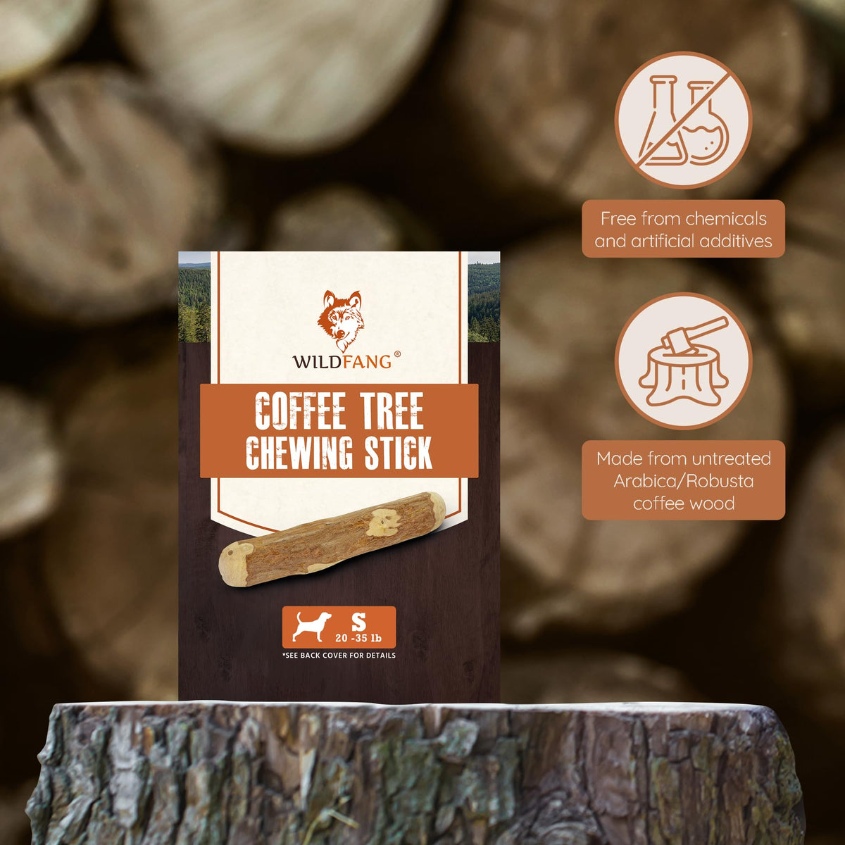 The question of sustainability is omnipresent and thats where our Wildfang coffee wood made from renewable Arabica/Robusta wood comes in handy. The chewing sticks are obtained as part of the coffee cultivation, through annual pruning of the plants. The plants do not have to be cleared. After cutting, the wood is debarked by hand, sanded, rounded at the ends, then dusted and cleaned. It is vegan, caffeine- and calorie-free and also free from bugs, so its also perfect for indoor chewing. Does your four-legged friend have a taste for furniture? This is where the wooden bone can help. The chewing stick is a very good alternative to chewing on beloved furniture, especially for puppies in the teething phase. The fine aroma of the chewing wood makes this chewing article very interesting and it is therefore very popular. Chewing is a very important occupation for the dog. It promotes blood circulation in the gums, frees the teeth from harmful deposits, trains the chewing muscles and makes a decisive contribution to your dogs relaxation and well-being. When giving chews, make sure that your dog always has plenty of fresh water available. Because if you chew a lot, youre also very thirsty. You should also always keep an eye on your four-legged friend and remove any chewing items that have become too small.