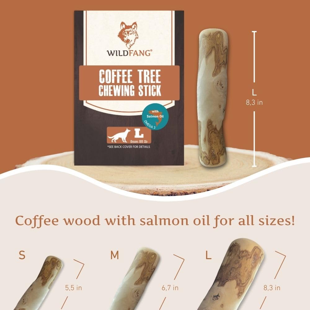 Wildfang Chewing Items For Dogs - Natural Dog Wooden Bone Refined With Salmon Oil Made From Hard And Robust Coffee Tree Wood Both You And Your Four-Legged Friend Can Benefit From Our Chewing Stick For Dogs. The Coffee Wood Chewing Stick Is A Popular And Sturdy Dog Toy And, On The Other Hand, Chewing On The Wooden Bone Can Train The Chewing Muscles, Remove Tartar From The Teeth And Keep The Dog Busy. The Natural Coffee Wood For Dogs Can Therefore Contribute To Healthy Teeth And Well-Cared-For Gums. The Salmon Oil Also Supports Skin And Coat Health And Also Inhibits Inflammation. Play, Fun And Care In One - What More Could You Want? Of Course, The Chewing Stick For Dogs Does Not Contain Any Chemicals Or Artificial Additives And Has Only Been Processed By Hand To Give Your Darling Carefree Fun Playing And Chewing. Species-Appropriate And Natural Chewing Bone Made Of Coffee Wood For Dogs - In Detail: Made Of Oven-Dried, Real Coffee Wood Chew Toy For Dogs 3 In 1: Dog Activity - Teeth Cleaning - Training Of The Chewing Muscles In Addition, The Coffee Root For Dogs Can Also Help Protect Your Furniture If Your Furry Friend Likes To Nibble On The Furniture Without Sharp Edges - Because Each Dog Wood Is Debarked, Sanded, Ground And The Ends Are Rounded Off By Hand. Finally, The Coffee Wood Chew Stick Is Carefully Dusted And Cleaned, Also By Hand Splinter-Free, Vegan, Untreated (Without Chemicals And Artificial Additives) The Dog Chew Root Does Not Contain Caffeine Dog Chew Wood Available In The Following Sizes: S - For Dogs Up To 15 Kg M - For Dogs Up To 25 Kg L - For Dogs Over 25 Kg Note: Each Dog Chew Toy Is Unique And Therefore Has Slight Differences In Size And Weight. Instructions For Use: Give The Dog The Chew Item And Offer It To Chew On