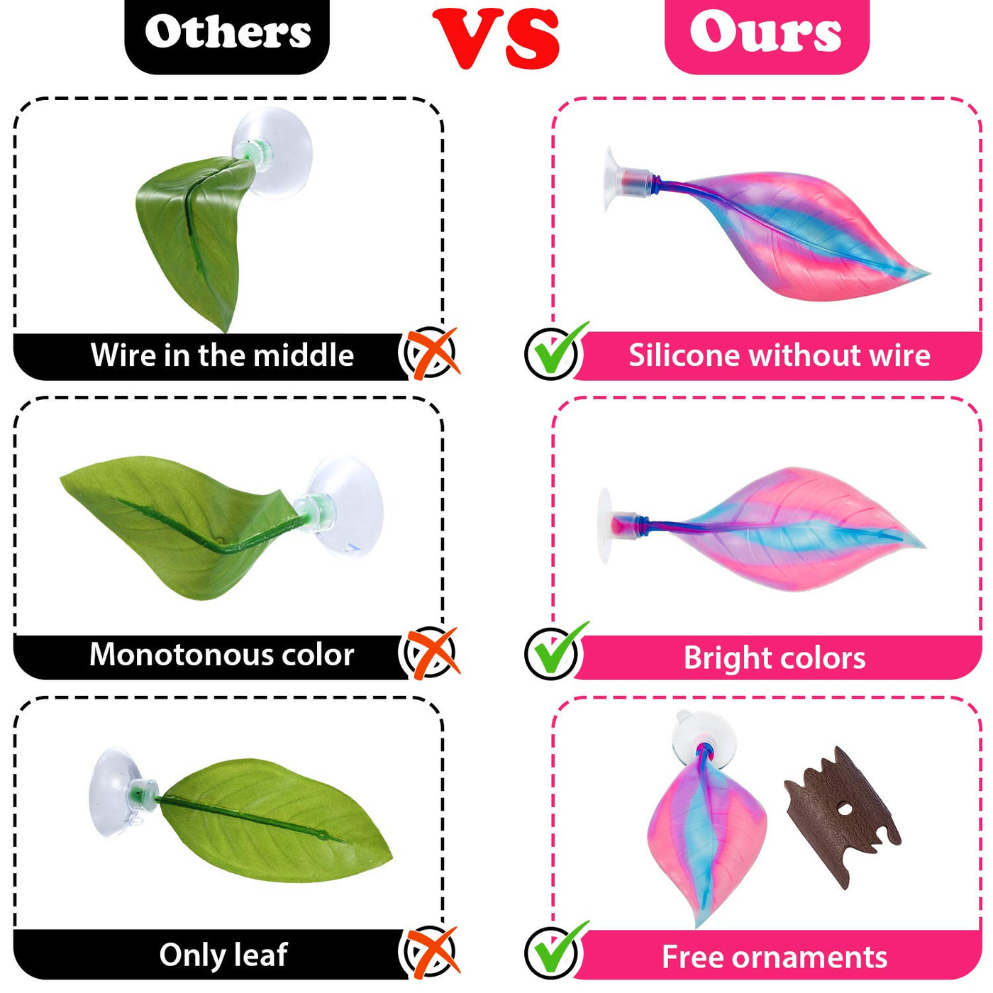 Good performance: Lightweight, durable, safe and long lasting material, the leaf hammock set for betta fish is made of plastic, the materials have no BPA, durable and waterproof.