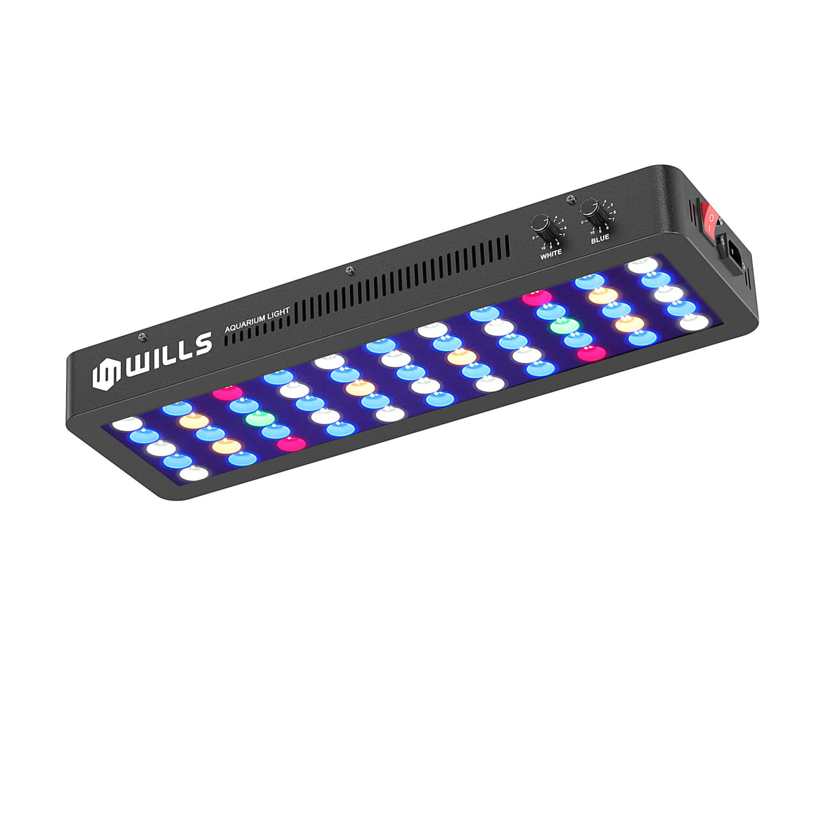 Q: What type of plants and corals does this light support?A: The WILLS Aquarium Light features a full spectrum design that caters specifically to the needs of both aquatic plants and corals. This comprehensive spectrum promotes lush plant growth and enhances the vibrant colors of corals.