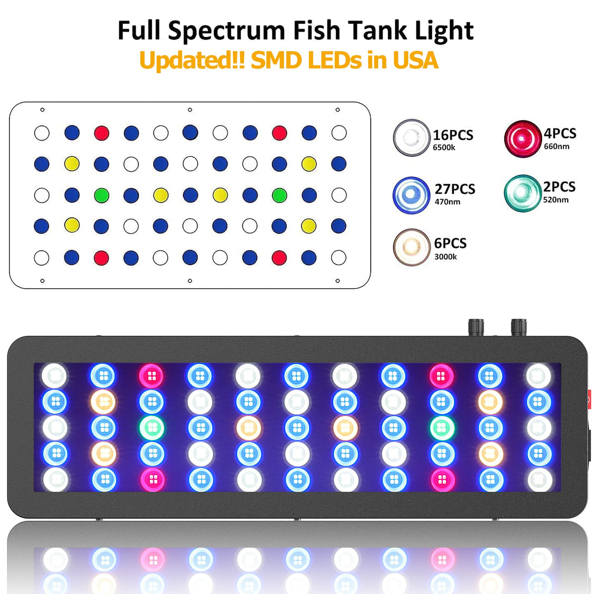 Wills Aquarium Light, Dimmable Full Spectrum Fish Tank Light With 3 Dimming Modes & 55 Premium Smd Chips, 165W Led Aquarium Plant Light For Saltwater Freshwater Coral Reef (21.3'X6.7'X2.4')