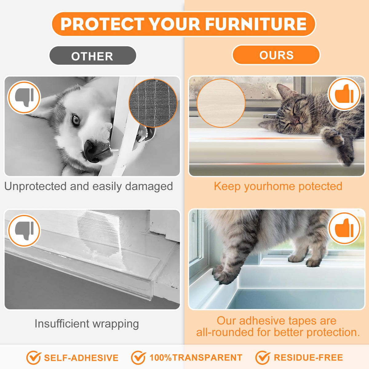 Window Sill Protector (4Inch X 16.5Ft) Cuttable Window Sill Protector,Door Protector From Dog Scratching, Protection From Dog An
