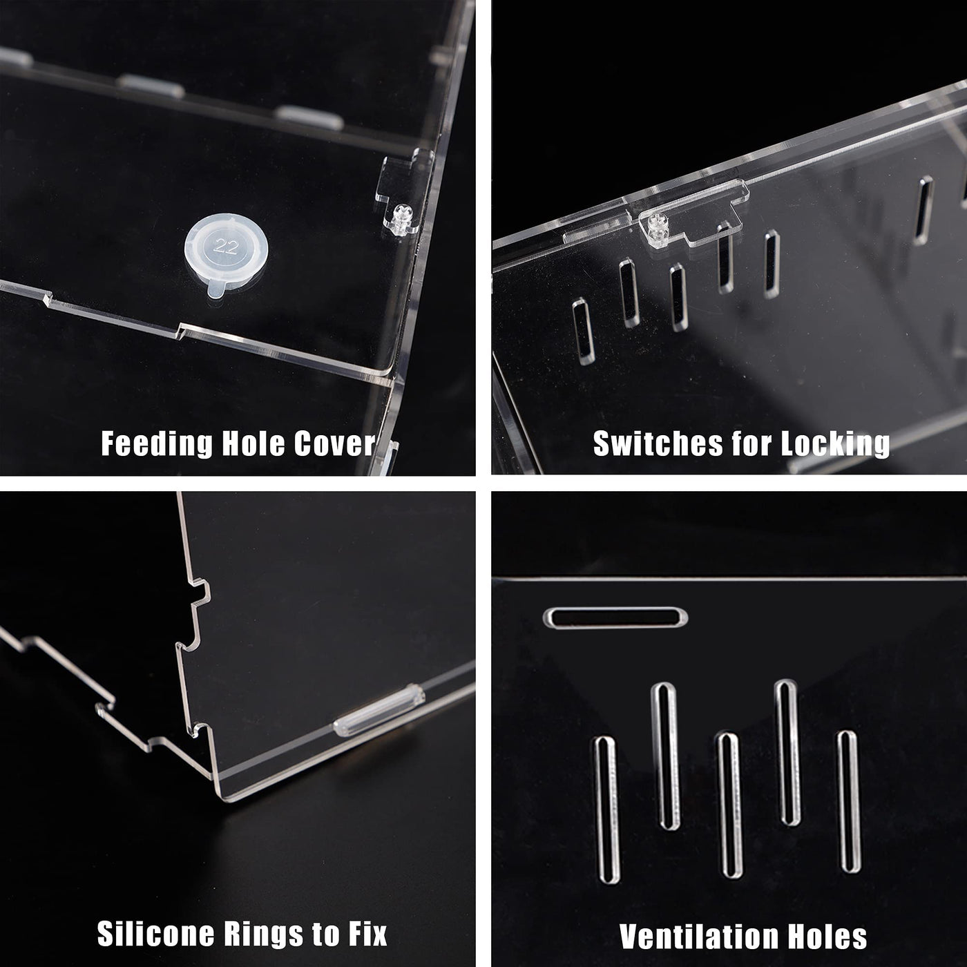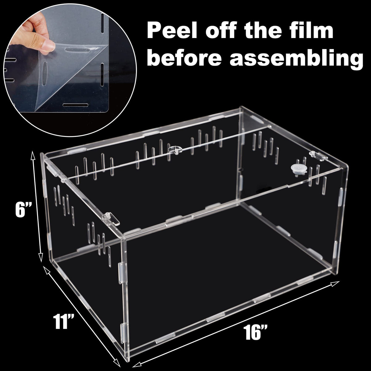 winemana Reptile Terrarium, Tarantula Enclosure, 16'' x 11'' x 6'' Acrylic Large Feeding Tarantula Habitat Box for Small Animals
