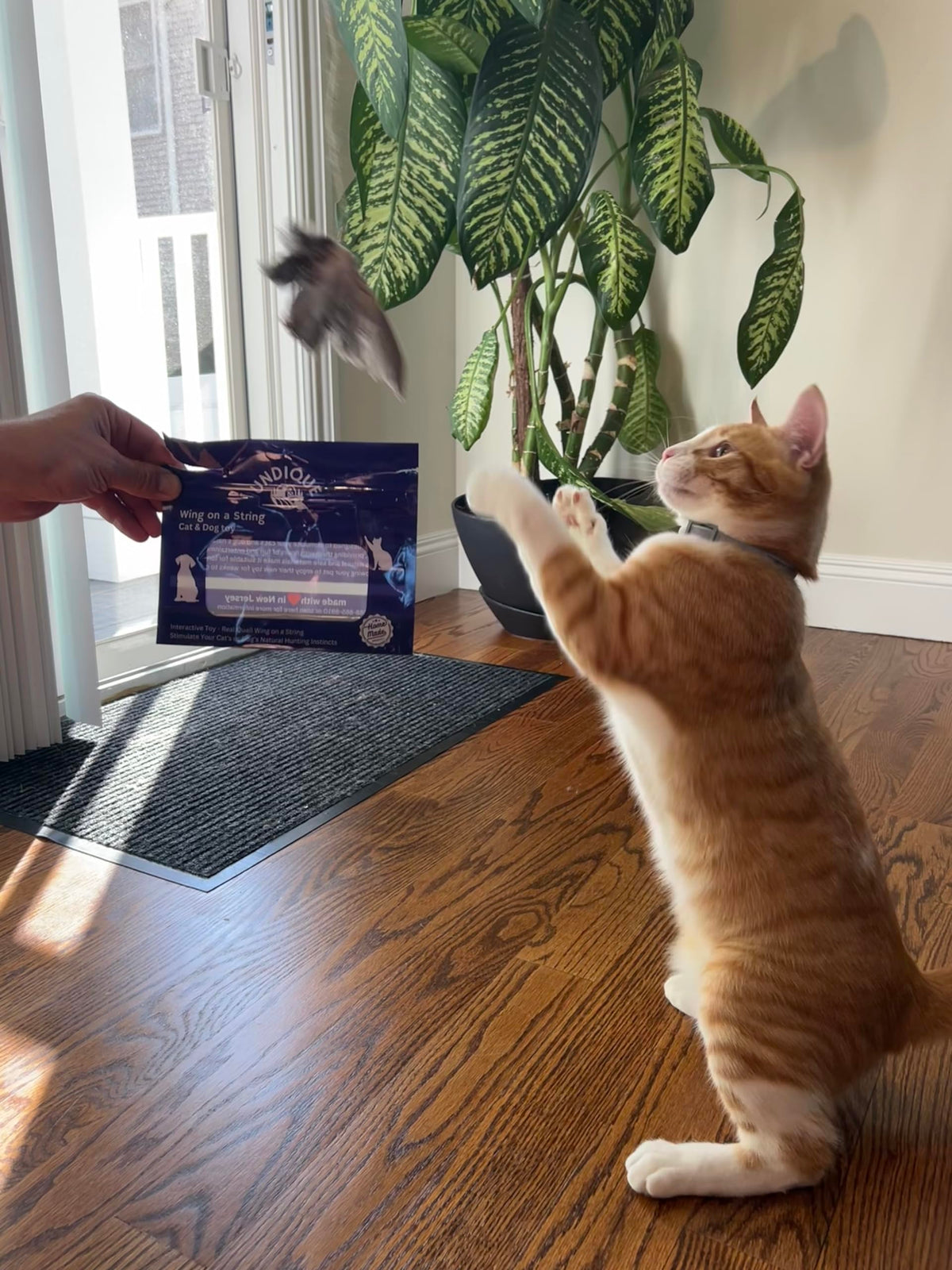 Enhance your cat's playtime with a real bird cat toy. This wing on string features authentic quail training wings, crafted from organic quail wings, ensuring an engaging experience for your feline.