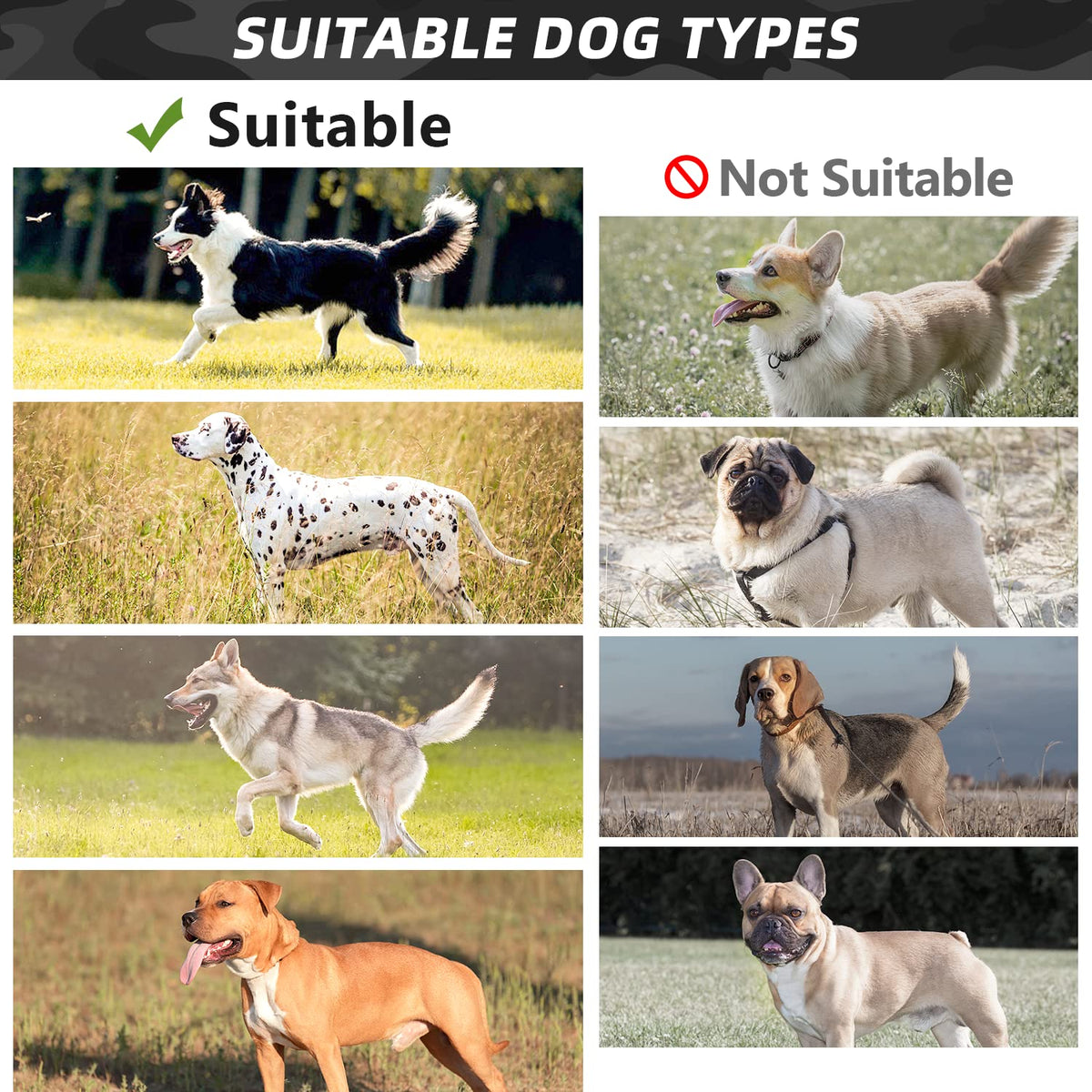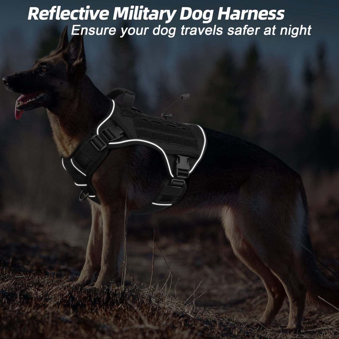 Q: Is the WINGOIN dog harness suitable for heavy-duty use?A: Yes, the WINGOIN Tactical Dog Harness is made from high-quality, durable 1000D nylon, designed to withstand heavy-duty use. It features a two-layer structure with sturdy stitching, making it ideal for K9 training, hiking, and walking with large or medium dogs.