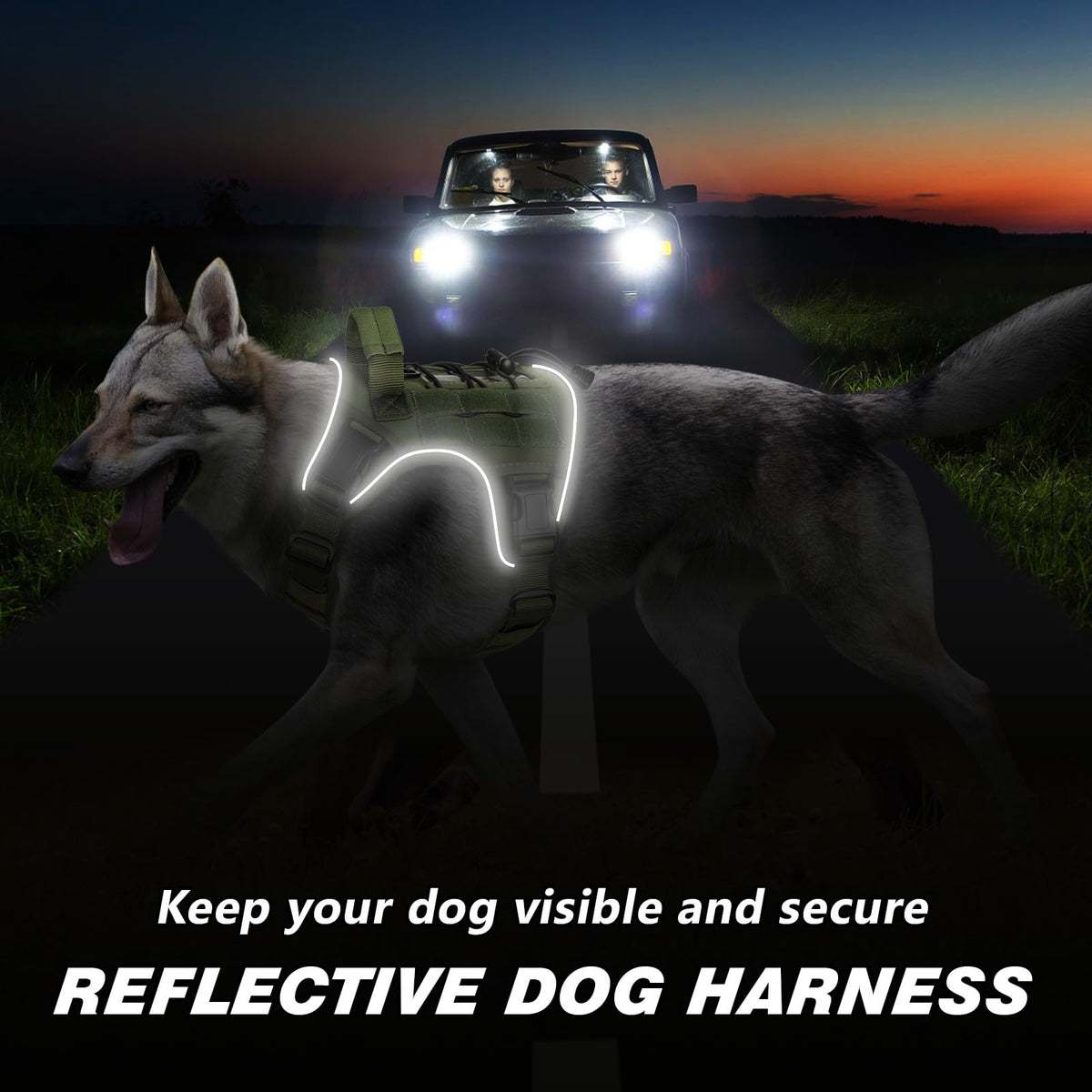 Tactical Dog Harness Vest for Small Medium Large Dogs No Pull Adjustable Reflective Military Pet Harness with Easy Control Handle with Hook & Loop Panels for Walking Hiking Training