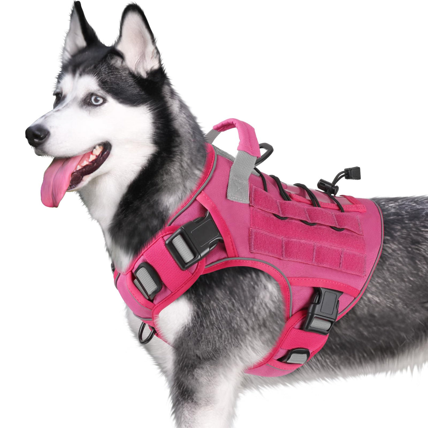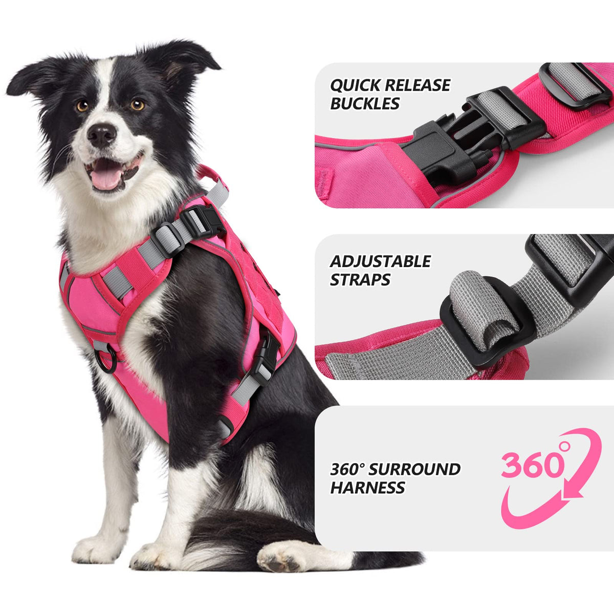 How To Wear The Tactical Dog Harness? Step 1: Unsnap The 4 Buckles And Loosen The Neck And Bust Straps To Adjust The Range Step 2: After The Straps Are Correctly Placed On The Dog, Lock The 4 Buckles On Both Sides Step 3: Slide The Adjuster And Pull/Push The Straps(Note: Put Two Fingers Between The Harness And Any Part Of The Dog'S Body To Ensure The Dog'S Comfort) Step 4: Put The Extra Straps Into The Two-Layer Vest