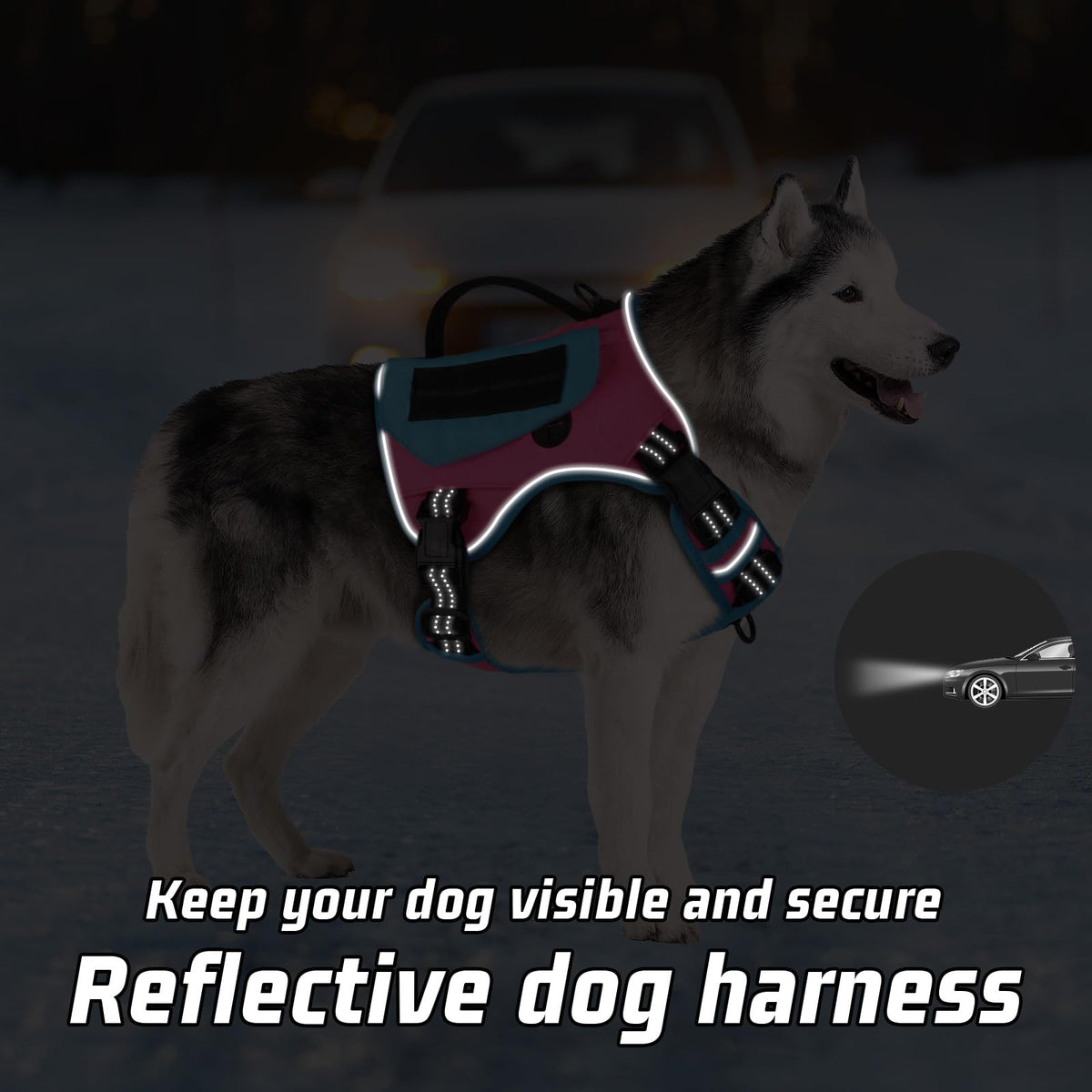 Wingoin Tactical Dog Harness For Large Dogs, No Pull Harness With Handle Pockets Poop Bag, Reflective Dog Vest, Military Service Heavy Duty Big Dog Harness For Walking Hiking Training, Pink Blue, L