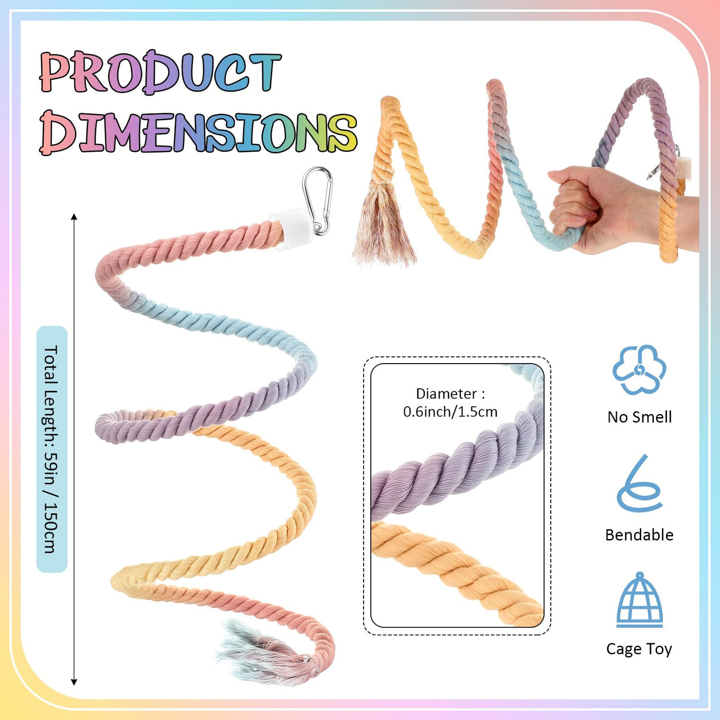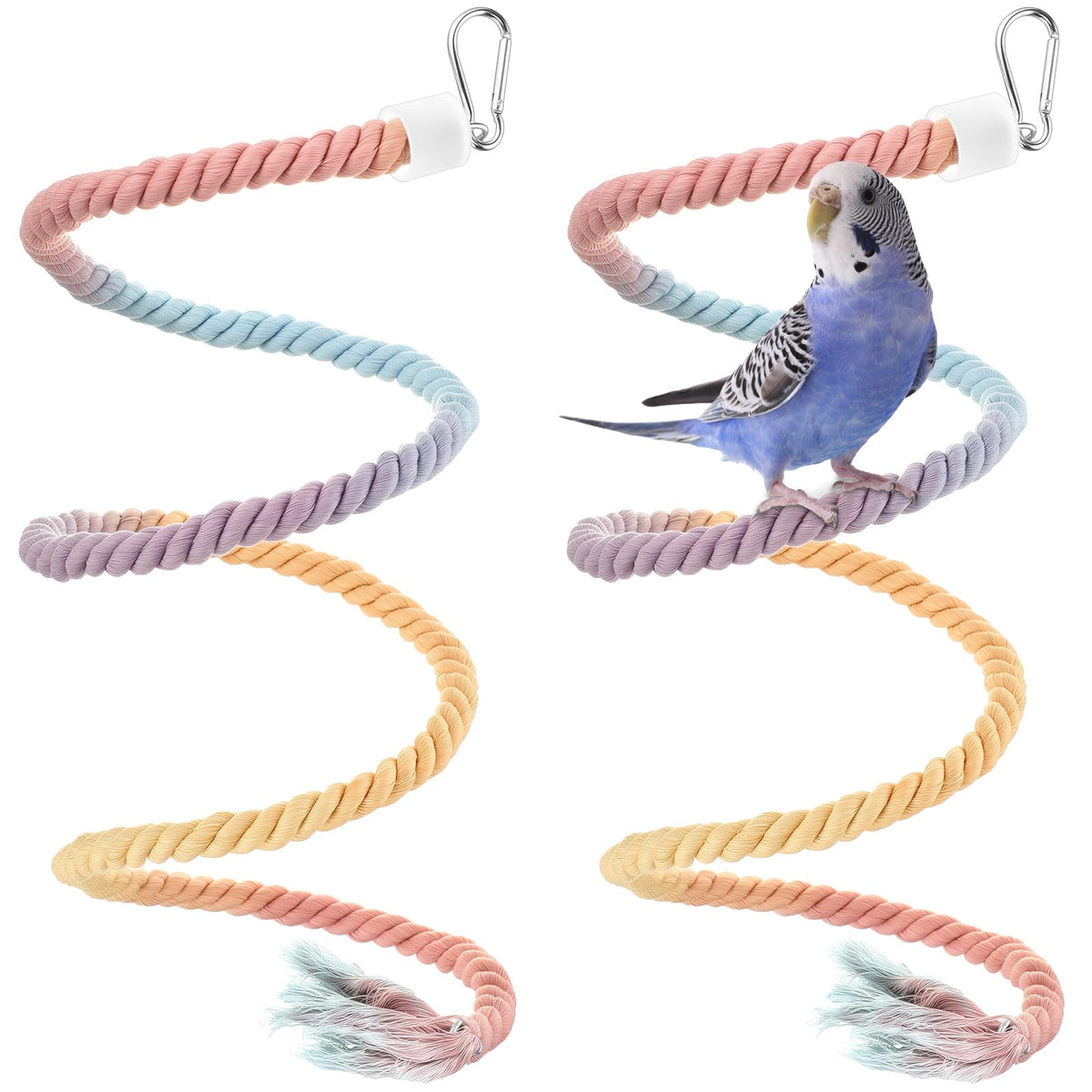 WinnerWhy 2 Pcs Gradient Bird Rope Perches Birdcage Swing Toy for Parrots Birdcage Cotton Swing Climbing Rope Standing Bungee To