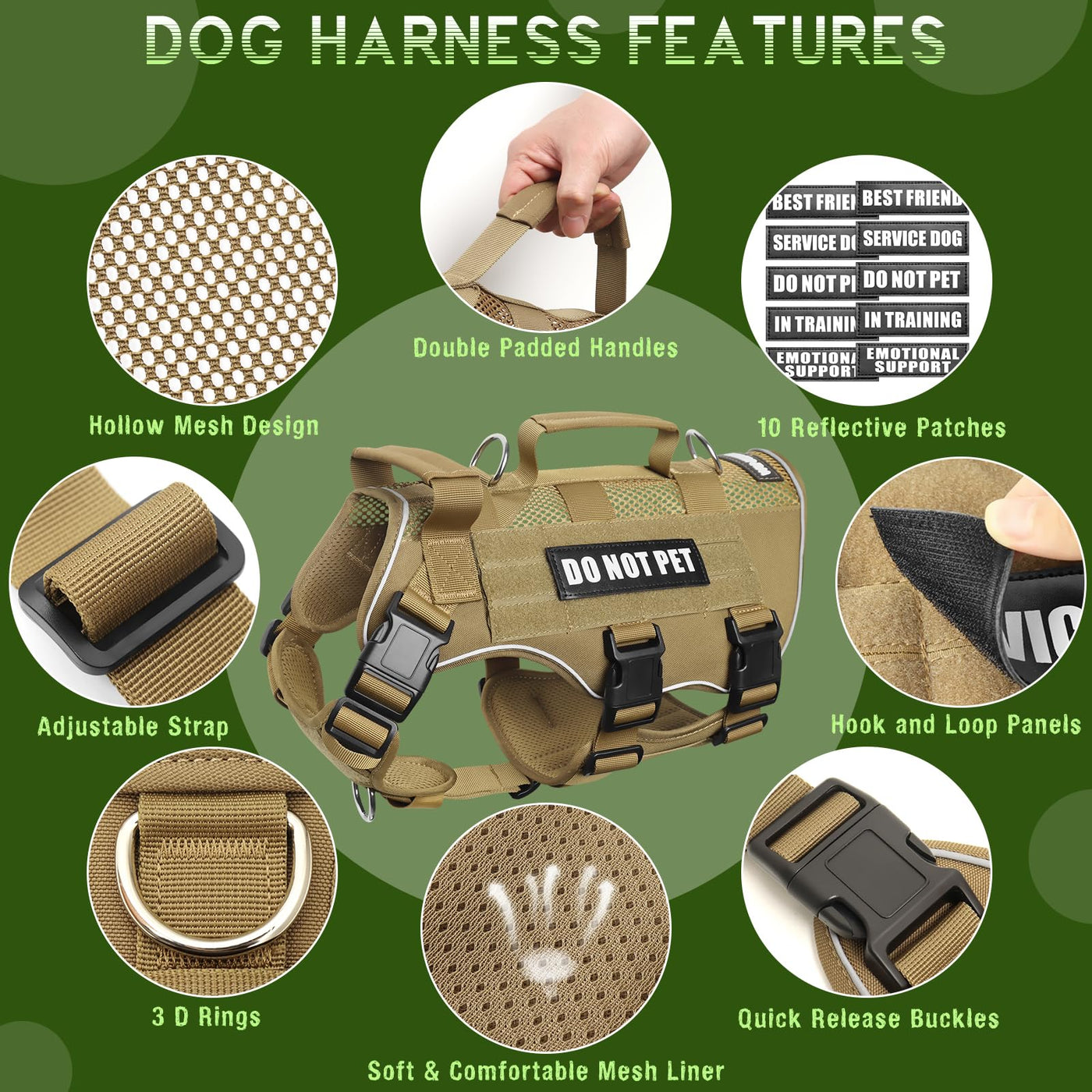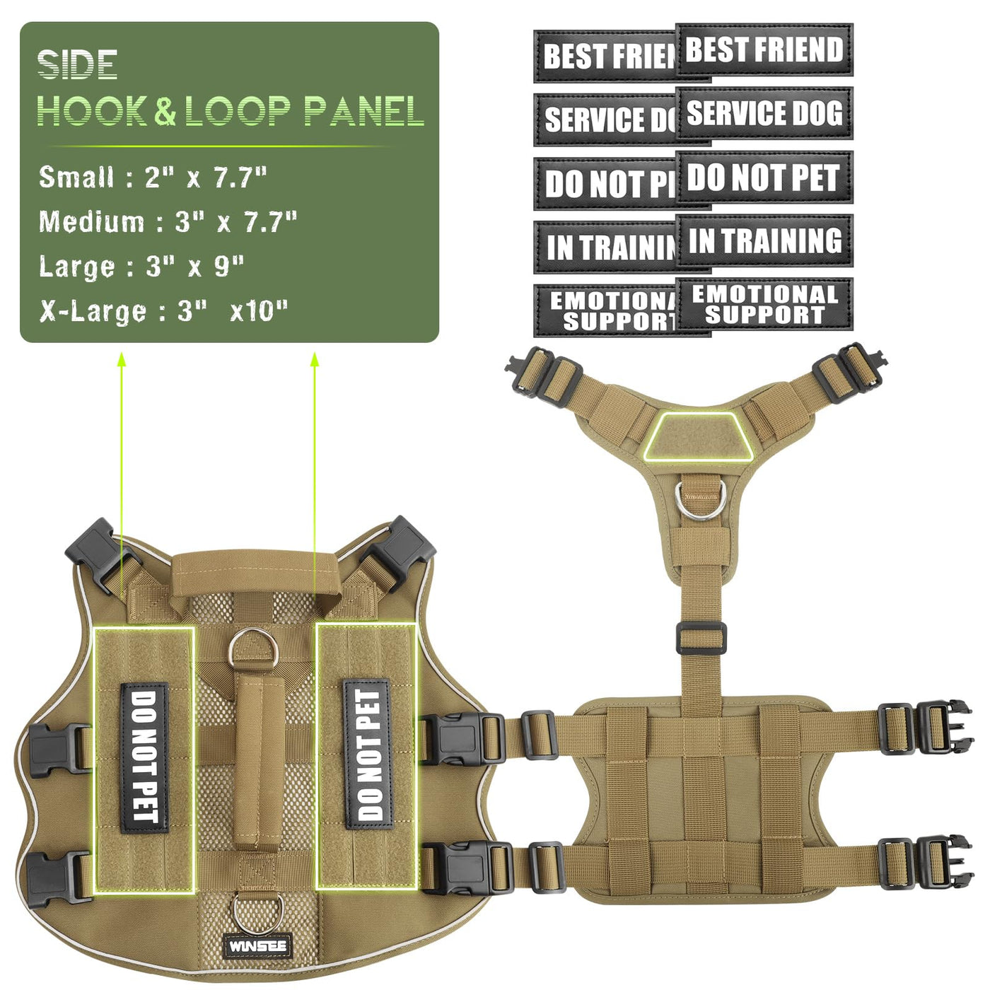 Winsee Mesh Dog Harness With 10 Pet Patches For Large Service Dog In Training, Breathable Tactical Molle Vest With Double Handle