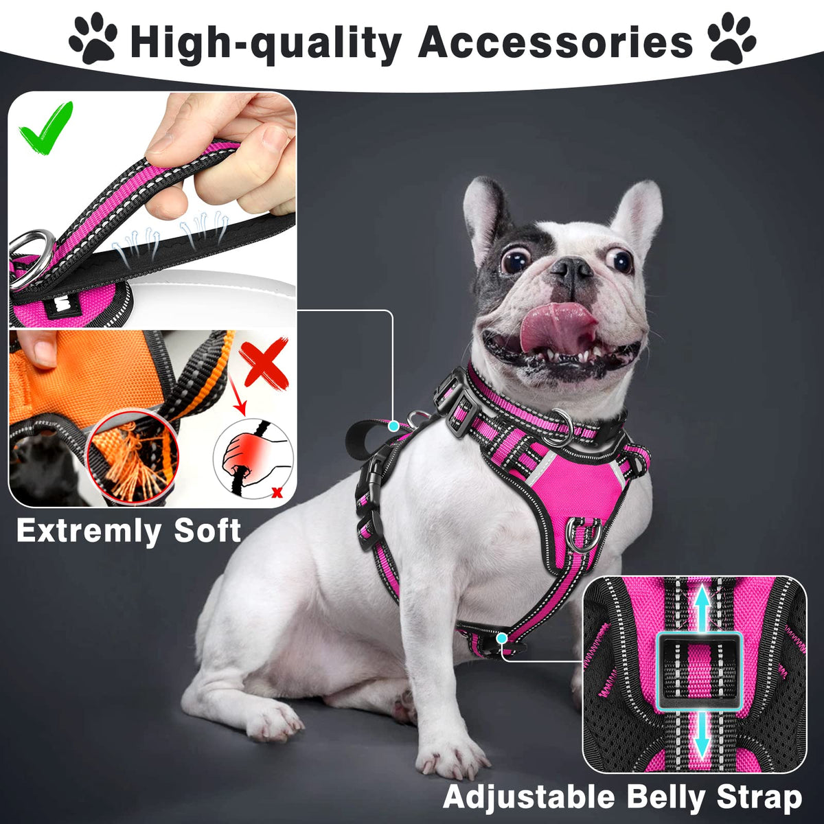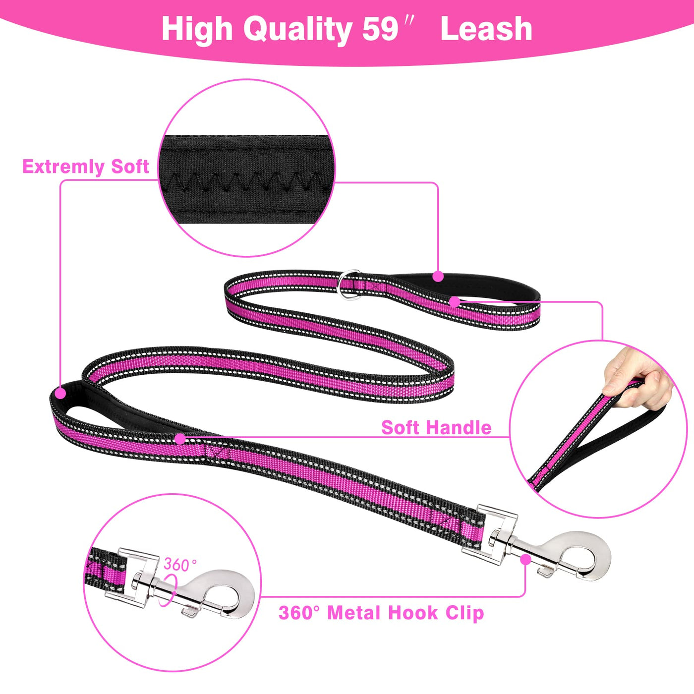 Winsee Pet Harness Collar And Leash Set, All-In-One Reflective Dog Harness No Pull With Adjustable Buckles For Puppies, Small, Medium, Large, And Extra-Large Dogs (Large, Rosy)