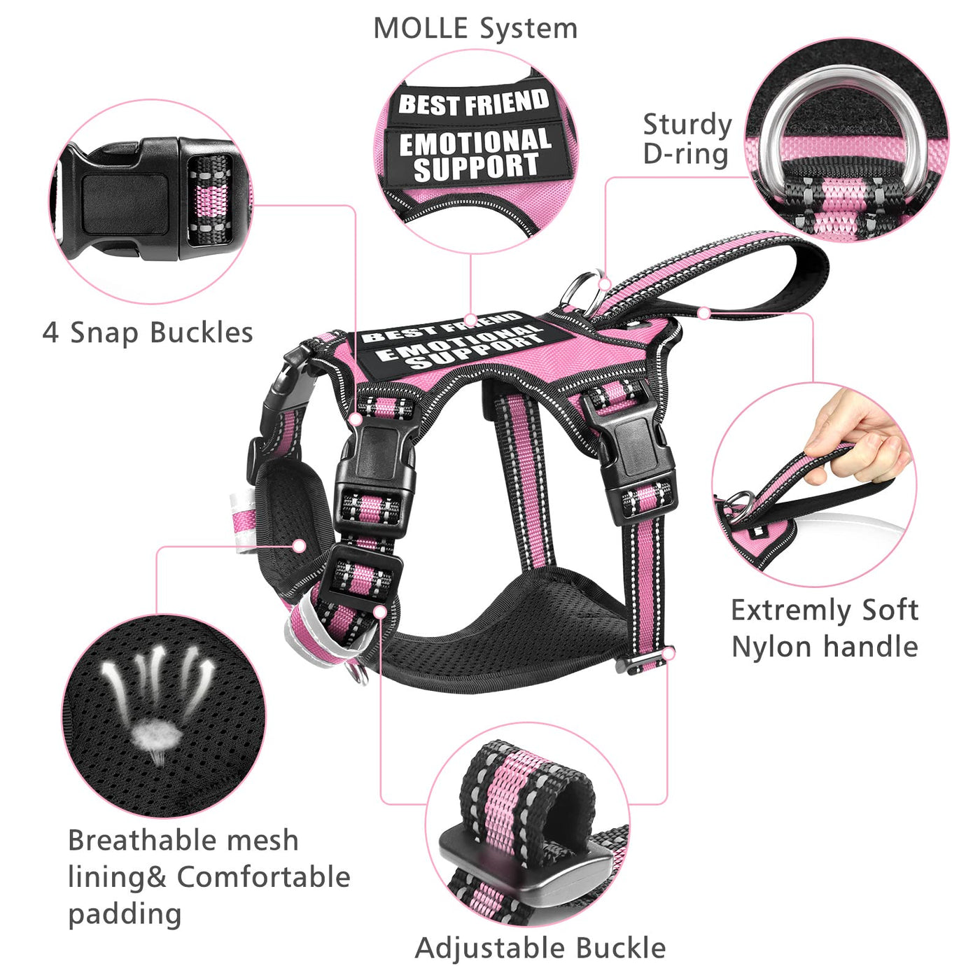 WINSEE Service Dog Vest No Pull Dog Harness with 7 Dog Patches Reflective Pet Harness with Durable Soft Padded Handle for Puppies Small Medium Large and Extra-Large Dogs