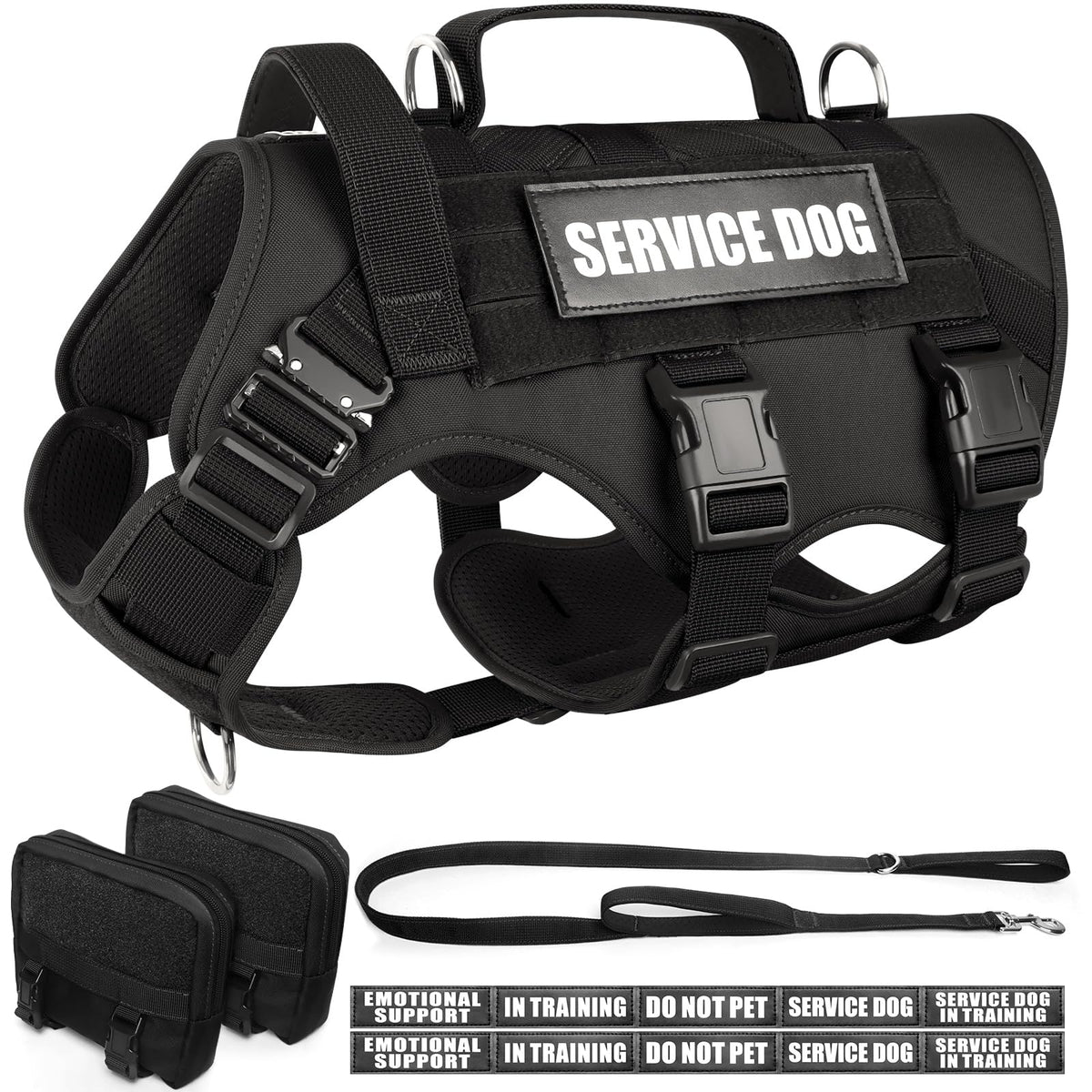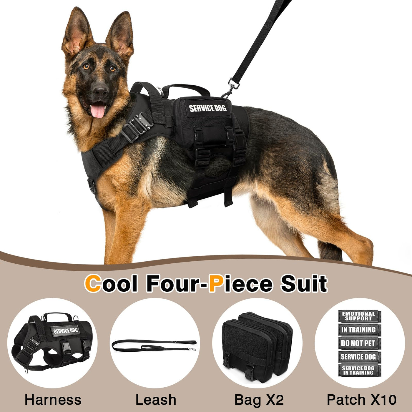 Winsee Tactical Dog Harness With Dog Leash, Service Working Molle Vest With 10 Pet Patches For Large Dog, No Pull Military Harne