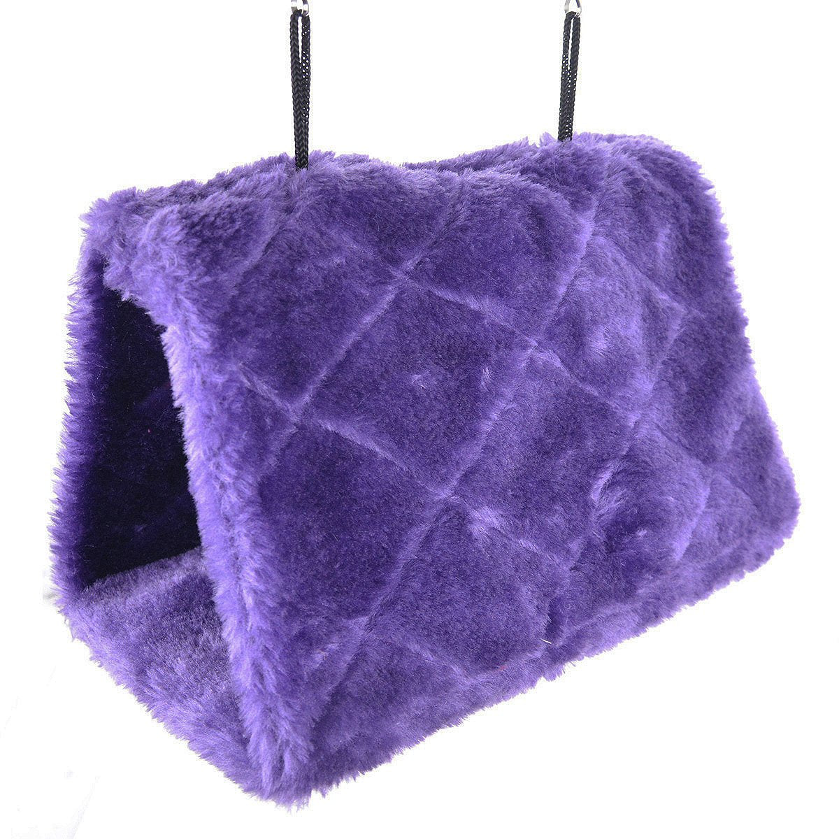 Winter Warm Bird Nest House Shed Hut Hanging Hammock Finch Cage Plush Fluffy Birds Hut Hideaway For Hamster Parrot Macaw Budgies Eclectus Parakeet Cockatiels Cockatoo Lovebird (M, Purple)
