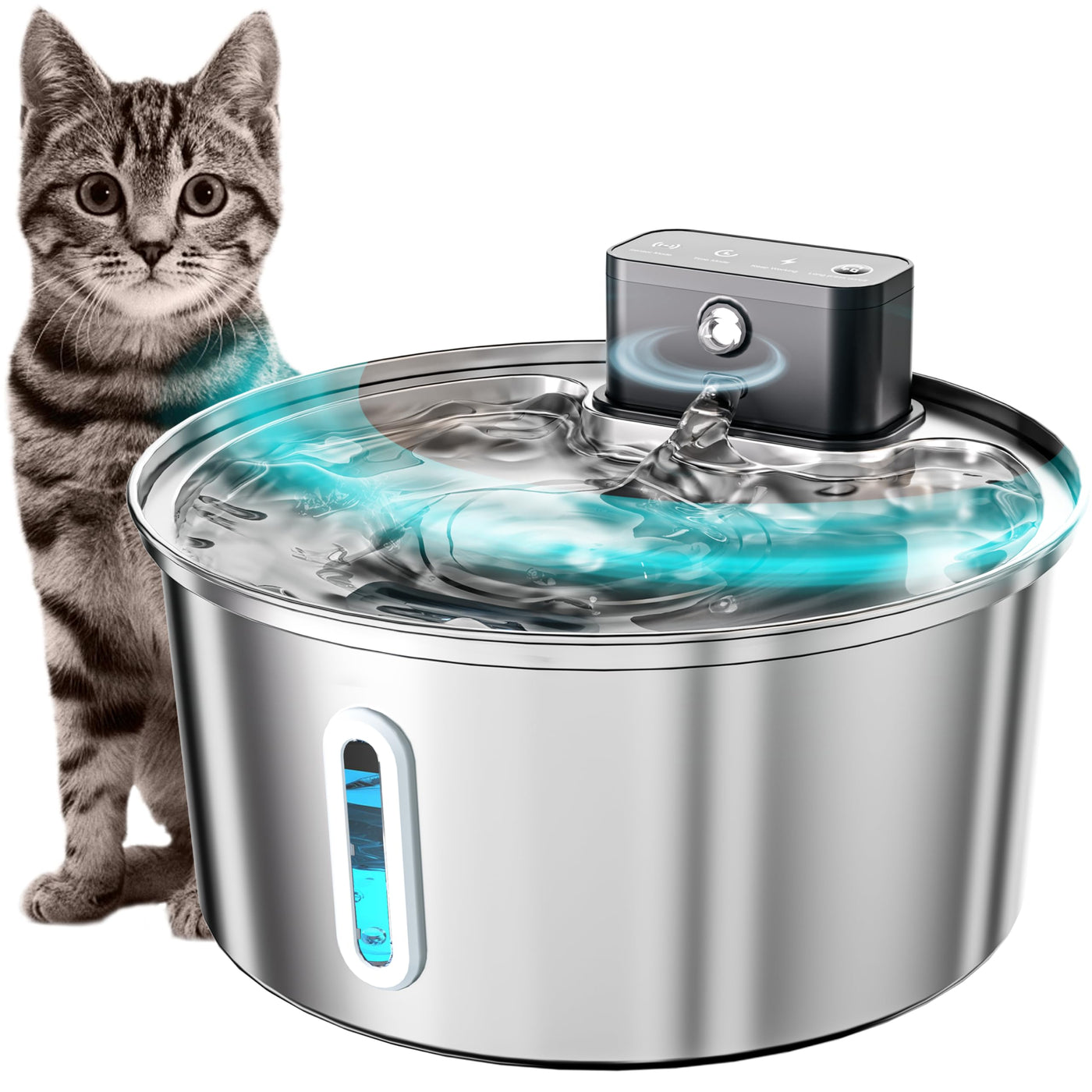 Wireless Cat Water Fountain,Stainless Steel Pet Fountain Battery Operated,3.2L Cordless Automatic Dog Water Dispenser, Quiet Ind