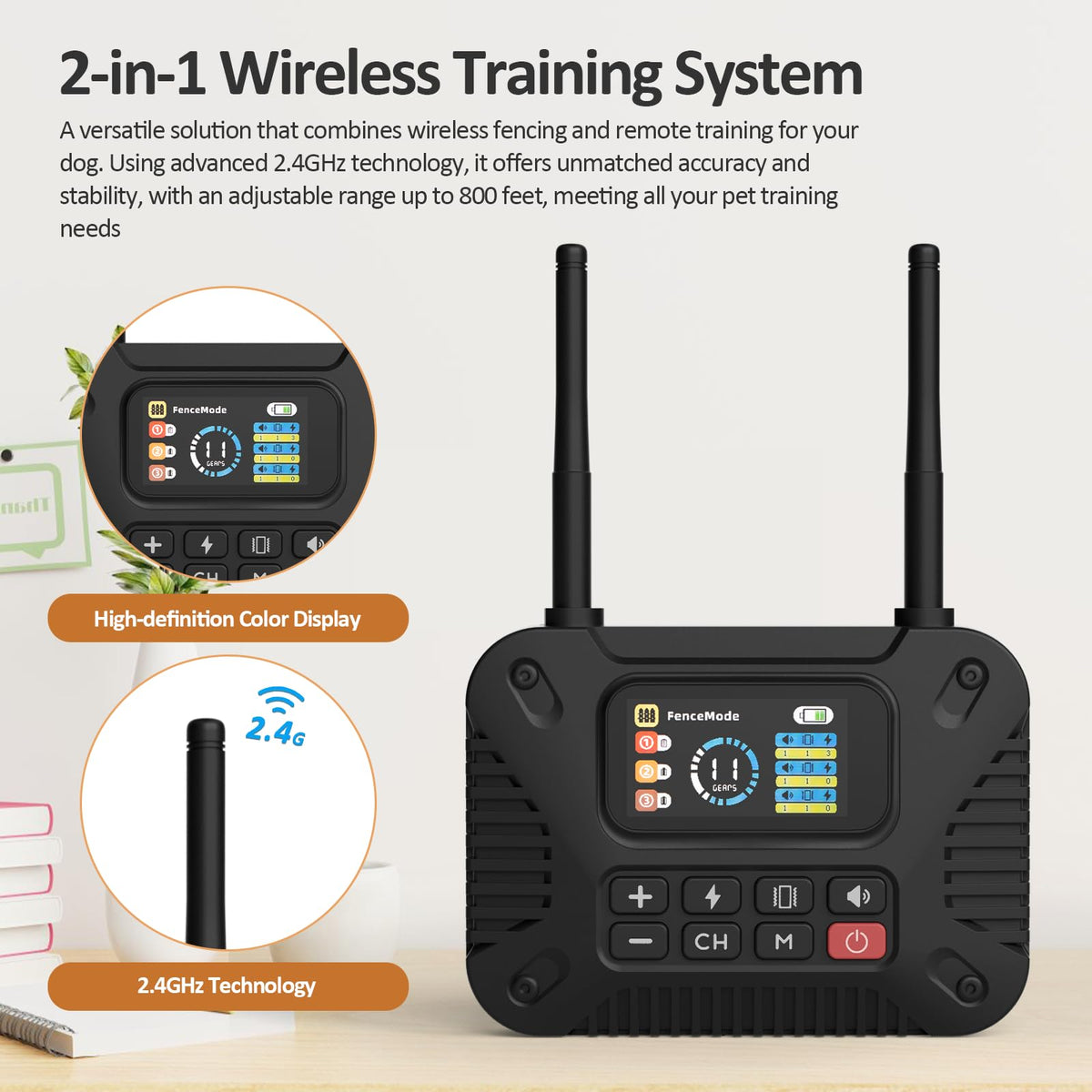 Wireless Dog Fence System, 2.4Ghz Pet Containment & Training Collar With Remote, Adjustable Electric Fence For Dogs, Rechargeabl