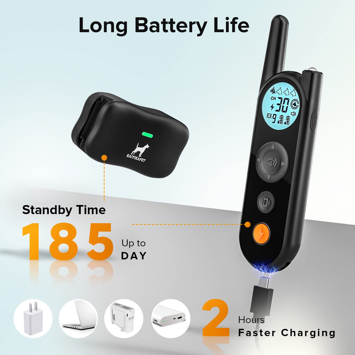 What Makes Kaiyikapet Dog Training Collar Be A Good Choice For Your Dogs? 1.Safety 3 Training Modes: Beep (5 Warning Tones), 0-9 Level Vibration, 0-30 Level Shock Mode 2.Electronic Fence Function 3.Up To 1.15 Mile Remote Range 4.Long Battery Life Up To 185 Days And Work 90-150 Days 5.Controllable Vibration Intensity To Protect Your Dog 6.High Quality Material, Not Easy To Damage 7.Two-Way Transmit Signal Electronic Fence Function Specifications: Model: X3 Vibration Level: 0-9 Shock Level: 0-30 Collar Receiver: Adjustable Dia. 3.94-7In/10-18Cm Recommended Dog Weight: 10-110Lbs/4.5-58Kg Receiver Ip Rating: Ipx7 Remote Control Waterproof Rating: Not Waterproof Receiver Battery Capacity: 350Ma Remote Control Battery Capacity: 800Ma Receiver Charging Time: 2 Hours Remote Control Charging Time: 2 Hours Receiver Standby Time: 185 Days Remote Control Standby Time: 185 Days Receiver Charging Interface: Type-C Connection Receiver & Remote Control Reception Range: Obstacles 1755Ft, Open 1.15 Mile/ 5905Ft Signal Receiving Method: Two-Way Reception Training Mode: Beep/Vibration/Shock What Will You Get? 1 X Remote Control 1 X Receiver Unit 1 X Collar Strap 1 X Usb Cable 2 X Long Connection Point 2 X Short Connection Point8 X Silicone Cover 1 X Neon Tube Tester 1 X Lanyard 1 X User Manual