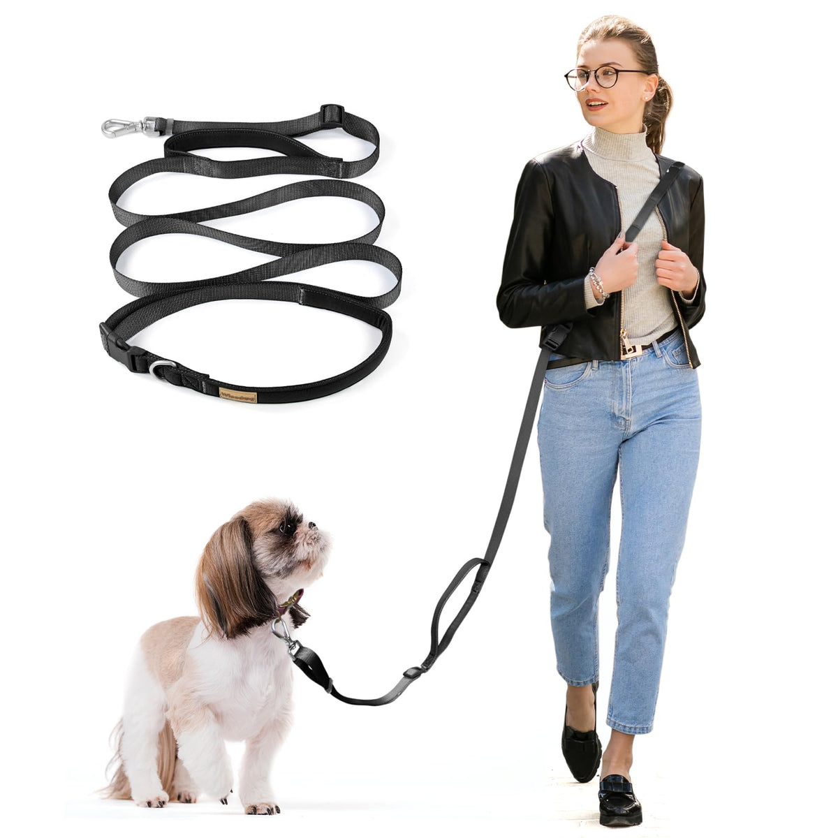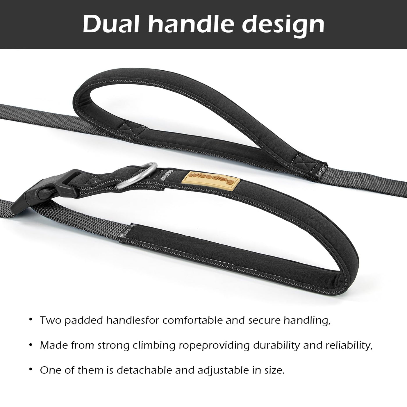 Wisedog 9.5 Ft Hands Free Dog Leash, Comfort And Safety Padded Handle & Heavy Duty Metal Clasp - Two Handle Dog Leash Adjustable
