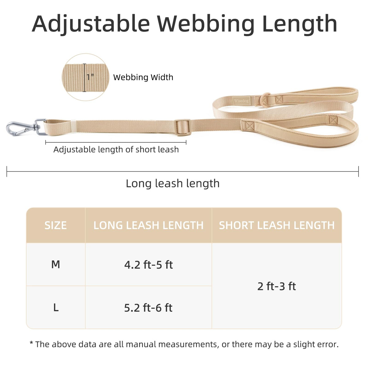 Wisedog Durable Two Handle Dog Leash: Dog Leash Heavy Duty With Dual Soft Padded Handles, Adjustable Length As Short Leash For M