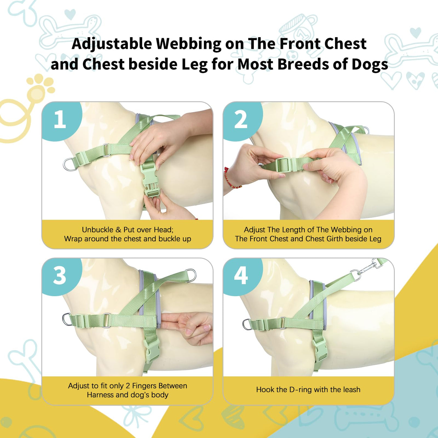 Wisedog No Pull Dog Harness - Adjustable Webbing Dog Halter Harness With Reflective Soft Padded For Large Dogs(Sage Green, Xs|Ne