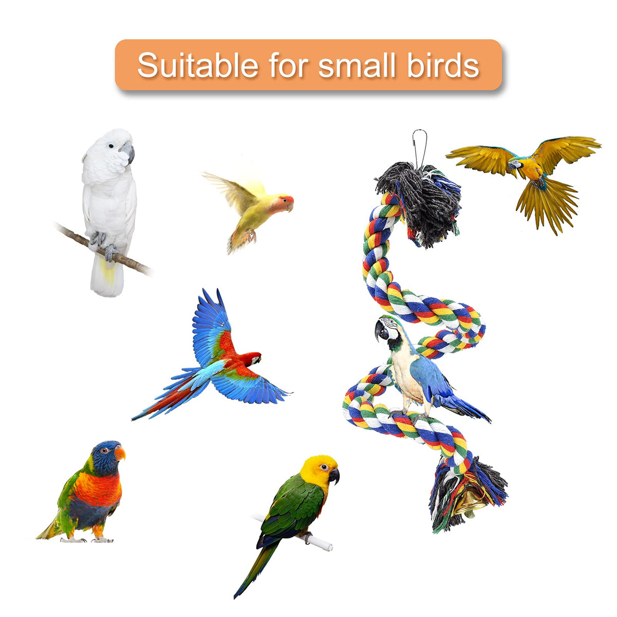 Wishlotus Bird Perches, Parrot Colorful Climbing Rope Swing Toys Parrot Stand With Bell And Hanging Clip For Parrots, Budgies, M