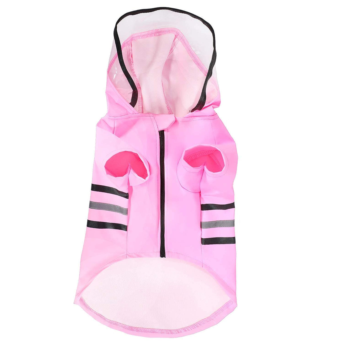 Wizland Reflective Dog Raincoat Dog Rain Jacket With Hood Lightweight Waterproof Rain Coat For Puppies (Pink M)