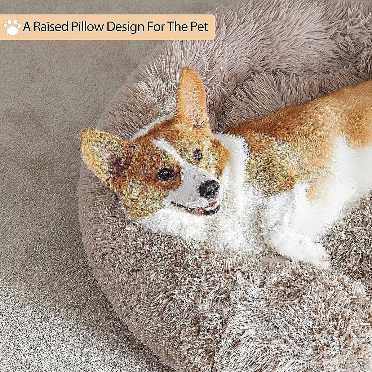 Wnpethome Calming Dog Beds For Large Dogs, Anti-Anxiety Donut Large Pet Bed, Fluffy Faux Fur Plush Dog Bed,Warming Cozy Soft Rou
