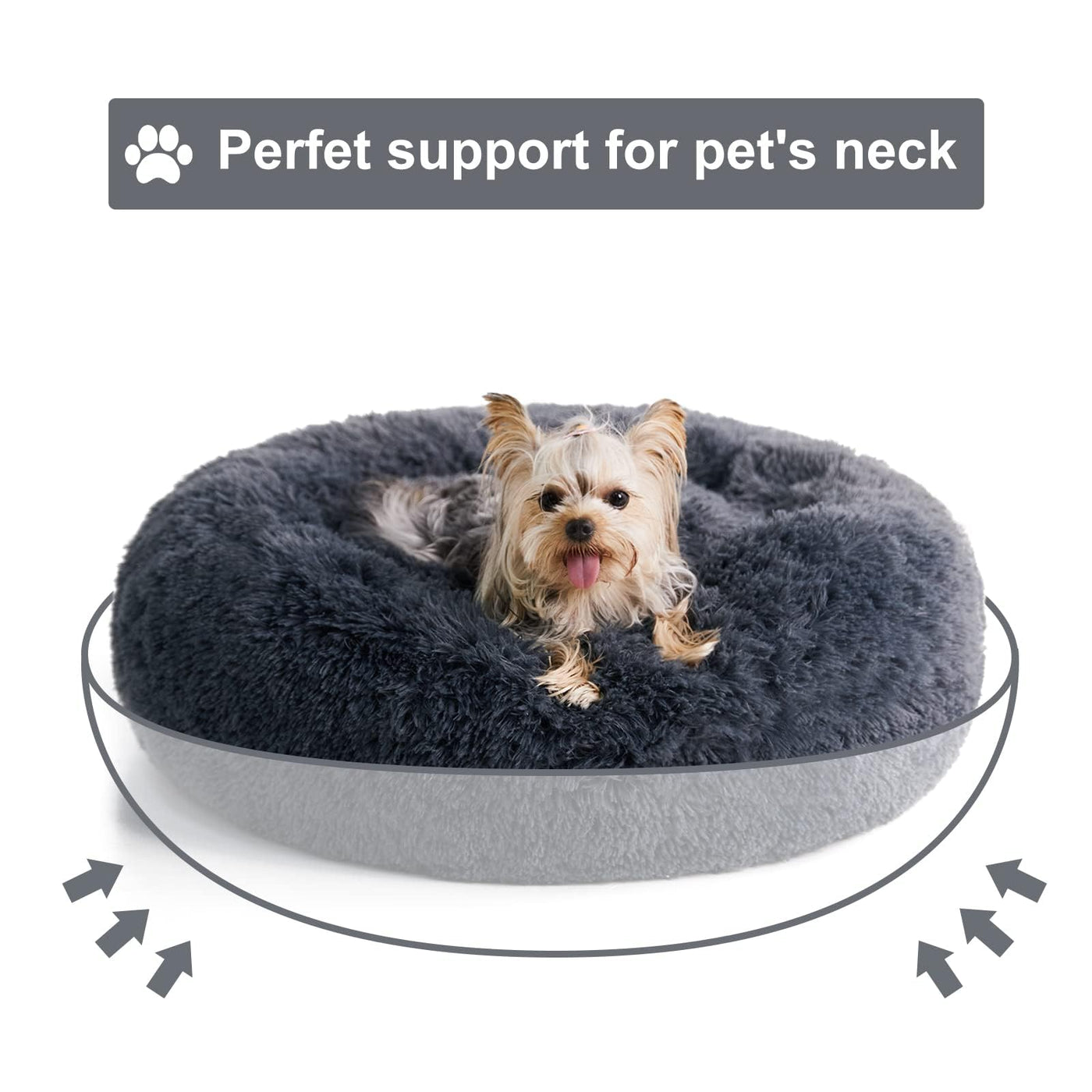 Wnpethome Calming Dog Beds For Large Dogs, Anti-Anxiety Donut Large Pet Bed, Fluffy Faux Fur Plush Pet Bed,Warming Cozy Soft Rou