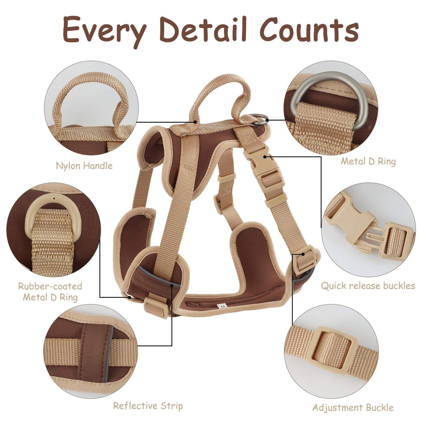 Wolfone No Pull Dog Harness Adjustable Soft Padded Pet Vest With Control Handle Adorable Daily Harness For Dogs(Chocolate Cookie